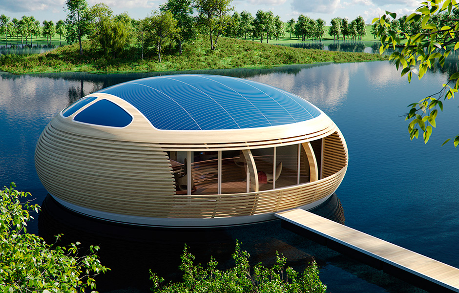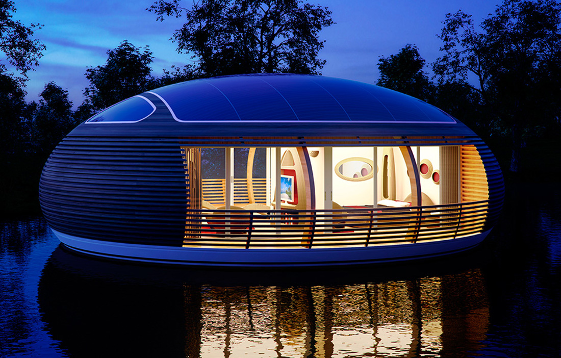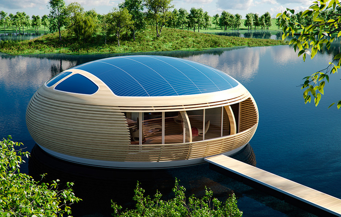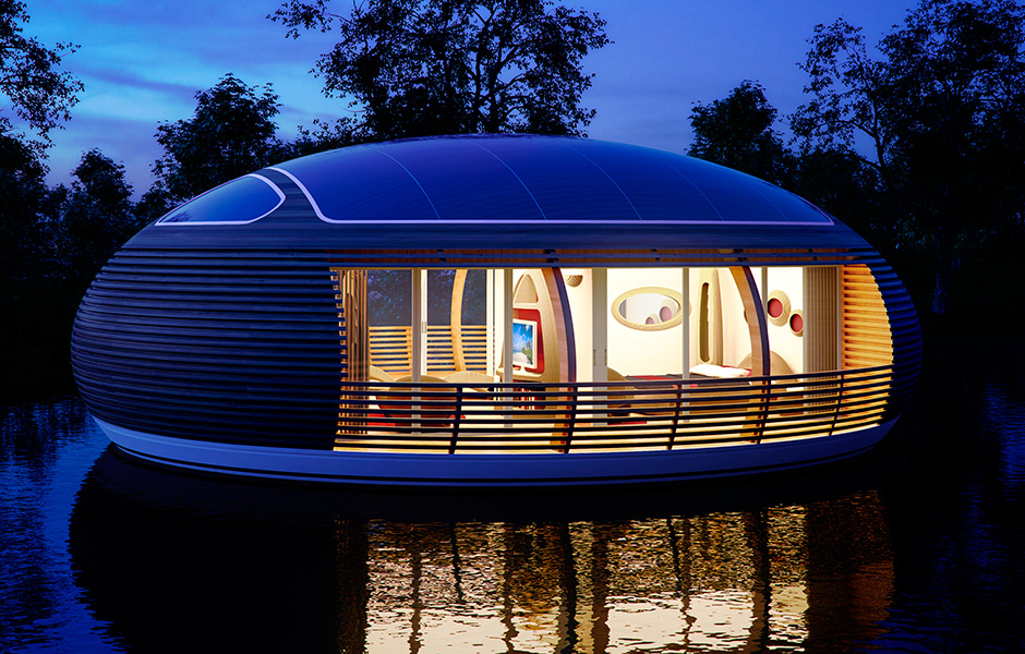 A newly developed type of curved solar panelling, fitted onto the rounded roof, guarantees lighting and ice in the cocktails for all the villa’s residents. The WaterNest 100 will be marketed by London-based company Ecoflolife. The man behind the design is Giancarlo Zema, an Italian architect who has made floating dwellings a speciality. For the time being, however, this is all just a concept. None of the companies’ websites indicate when you might see a floating villa like this on sheltered waters near you.«