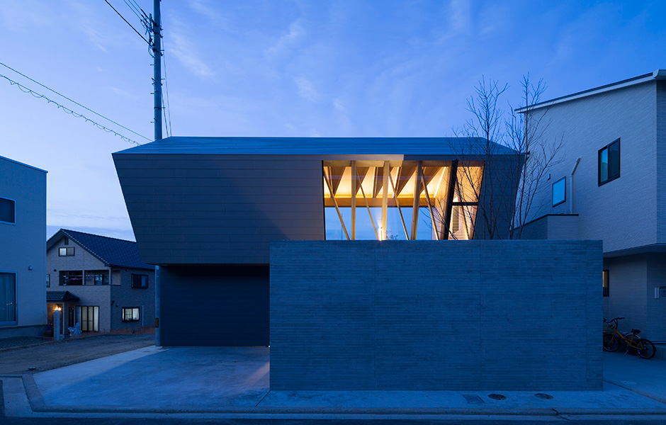 THE ‘WRAP HOUSE’ stands out in a dense residential area at the top of a hill in the city of Matsuyama in southern Japan. The house was designed by the Tokyo-based practice Apollo Architects and has a façade of bare concrete combined with Western red cedar and galvanised steel plate. But it is the roof structure that really gives the building its character.