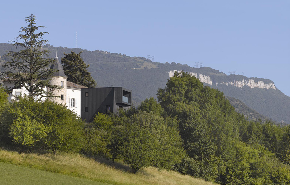 MONOLITHIC ARCHITECTURE – that’s what French architect Odile Decq calls the pavilion in the park next to the castle Tour Saint-Ange in Grenoble. Each year, an artist is invited to use the space as a studio for a time. The pavilion stands out against the traditional buildings around it, providing privacy and a calm working space.