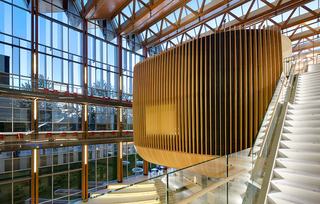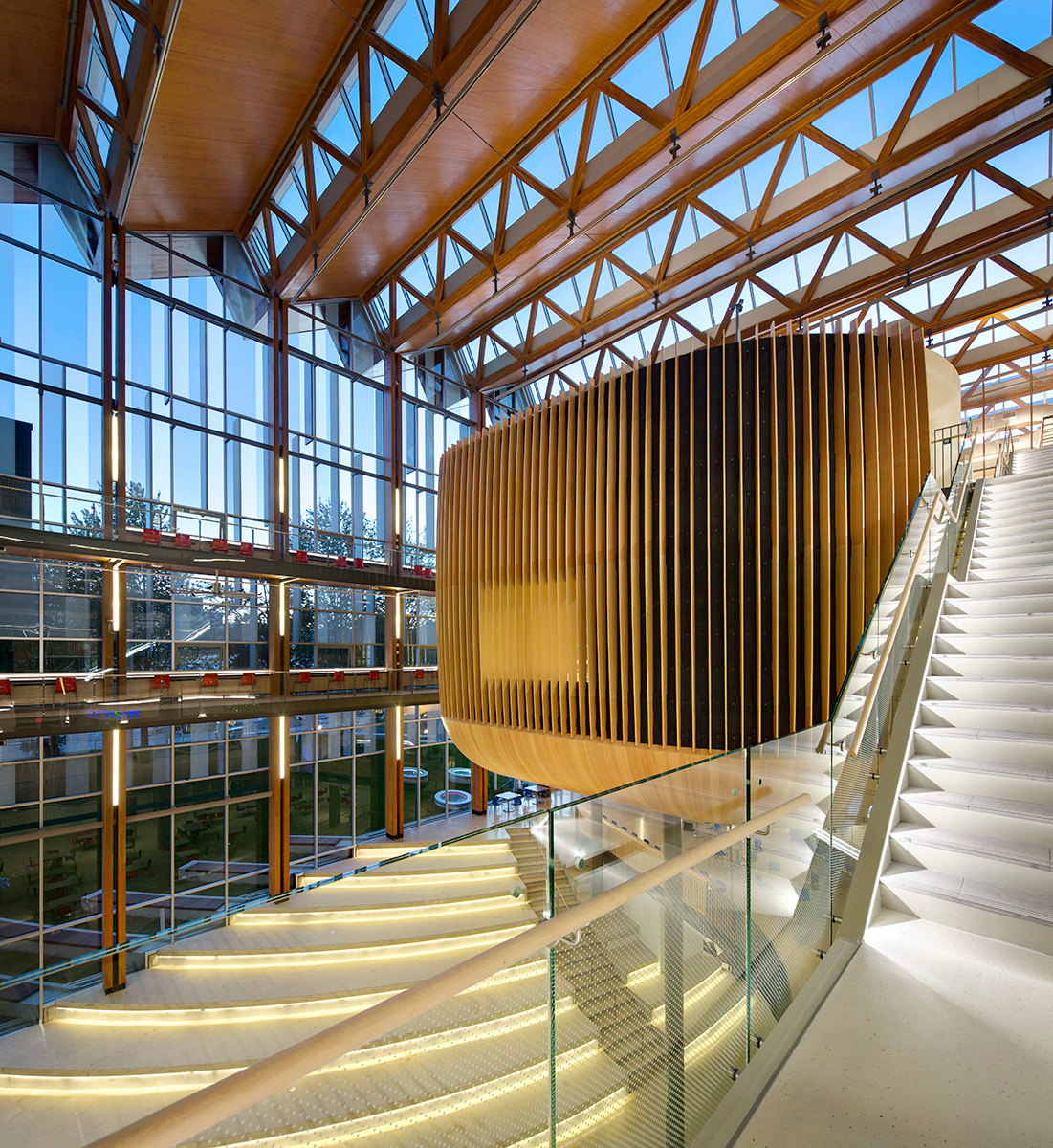 FIRE AND SOUND are the key issues associated with crosslam carcasses. Low-frequency vibrations in the structural frame have posed a major challenge and are often dealt with using suitable fixings in the floor structure and supplementary surface layers and insulation. Crosslam is generally made from spruce, but the composition may vary in terms of the quality of the surface layer, depending on whether the wood will be exposed or concealed. To improve the vibration performance of the floor structure, different kinds of wood can be used in different layers, and cast concrete can also be added. Various combinations involving concrete are increasingly being proposed as a means of improving the stability of very tall buildings and many of the latest designs for 30–40 floors use a range of hybrid structures with concrete floors and/or shafts. Other projects use a steel frame with crosslam floor structures.