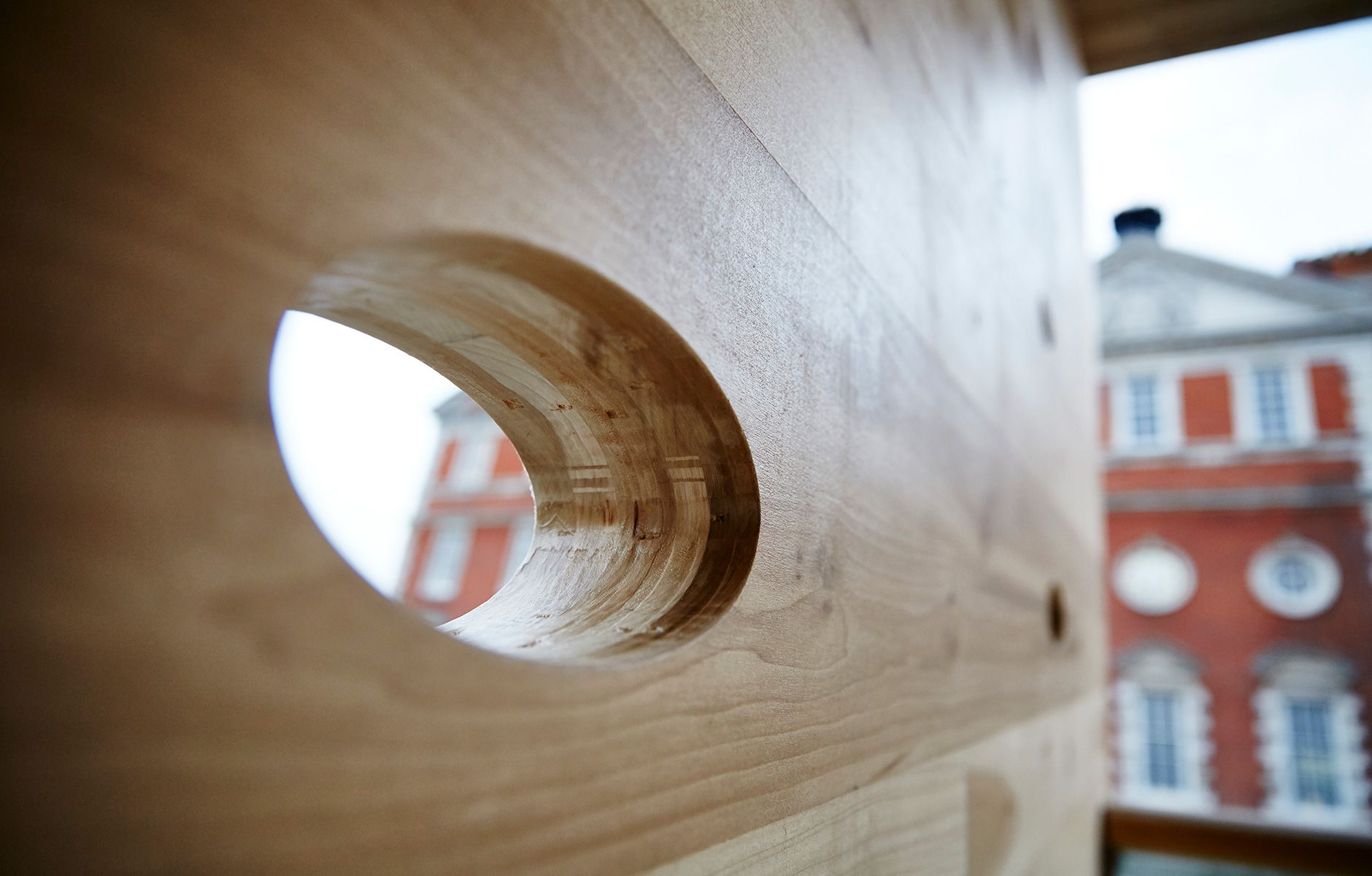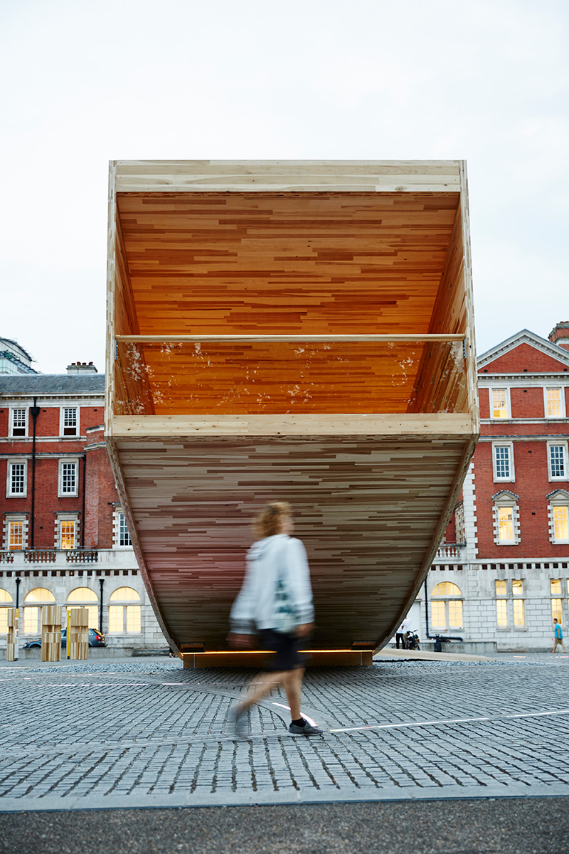 VISITORS TO THE London Design Festival in late September will be met by a 34 metre wide smile – made from American tulipwood, a species of hardwood. Called The Smile, the pavilion was designed by the architect Alison Brooks to show the public just what can be done with crosslam. Design and engineering company Arup took care of the structural engineering, while the crosslam panels were supplied by German company Züblin. At a length of 14 metres, these are the biggest hardwood crosslam panels ever made. The building comprises 12 wooden panels, held together with 2,000 screws.