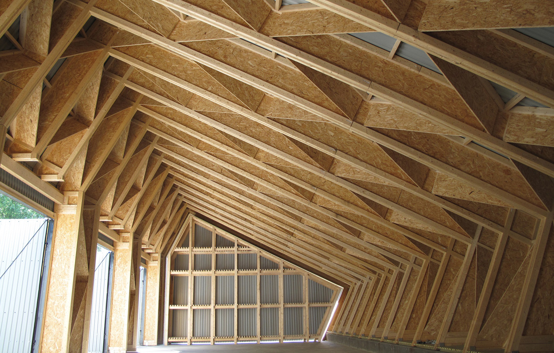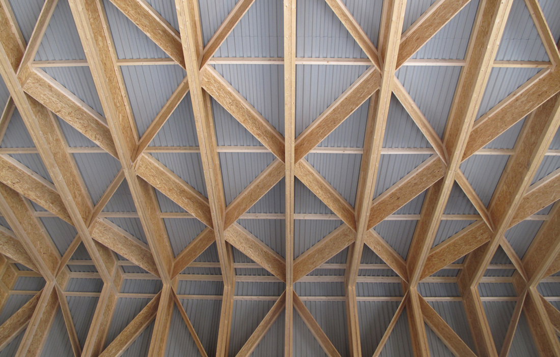 The barn is made almost entirely from wood. The only exceptions are the concrete foundations and the corrugated sheet metal on the ceiling and inner walls for water drainage. The structural frame comprises both OSB sheets and solid spruce timbers. The walls and roof are clad in treated solid spruce, while the interior walls have been left untreated. Using so much wood was an obvious choice for SCS.