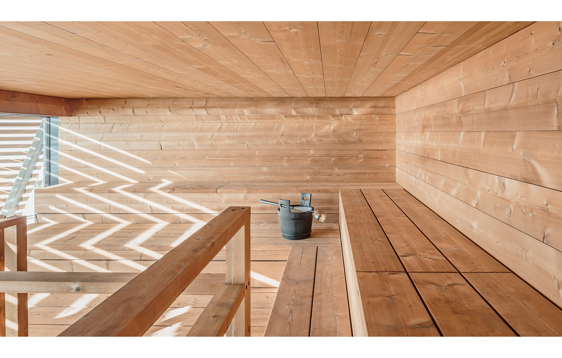 “We needed extremely large, thick and durable planks. They also had to be easily available at a reasonable price. This is because we replace the sauna wood every two years due to its intensive use. We quickly determined that heat-treated pine and spruce met all the criteria for a good sauna wood,” says Anu Puustinen. Despite the building’s strong wooden feel, the structural frame is steel. Although Avanto Architects would very much have liked to do it all in wood, Anu Puustinen is clear that it would have been complicated.