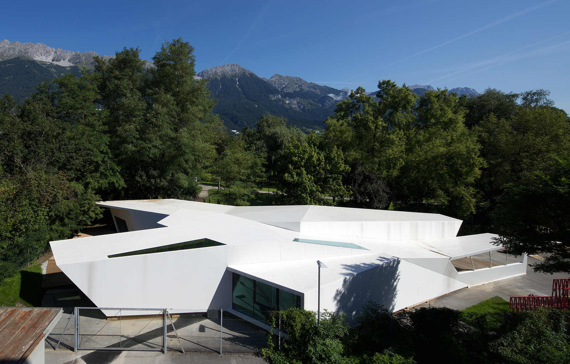 The Rapoldi park in the Austrian city of Innsbruck used to be a rough area mainly frequented by skateboarders. Since autumn 2015, children and young people aged 4 to 19 have been able to develop their artistic skills in the Bilding pavilion, designed and constructed by architecture students from Studio3 Institute for Experimental Architecture at the city’s university. The initiative comes from a group of socially committed architects and the plot has been provided by the city.