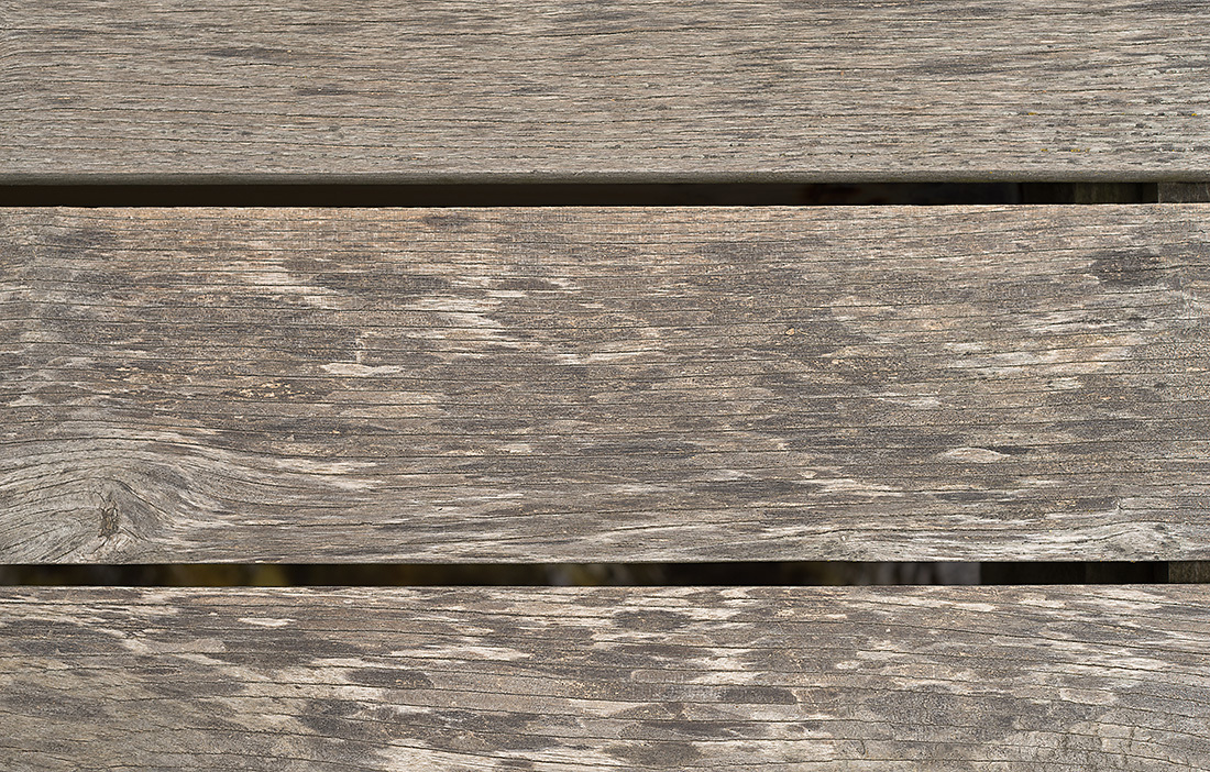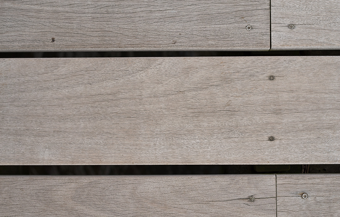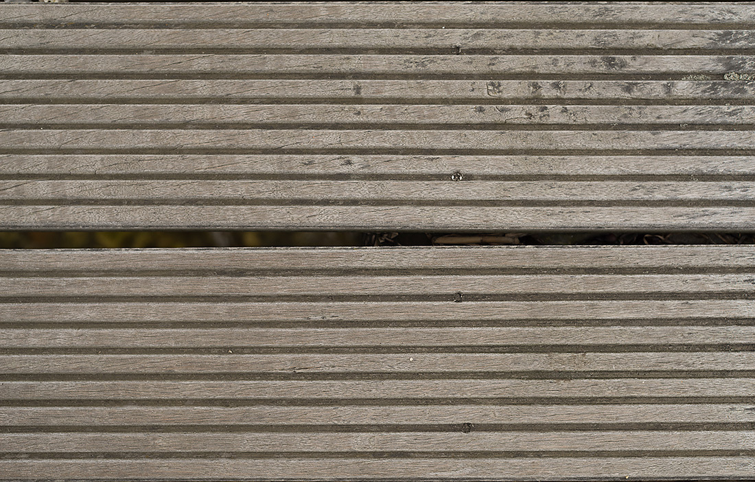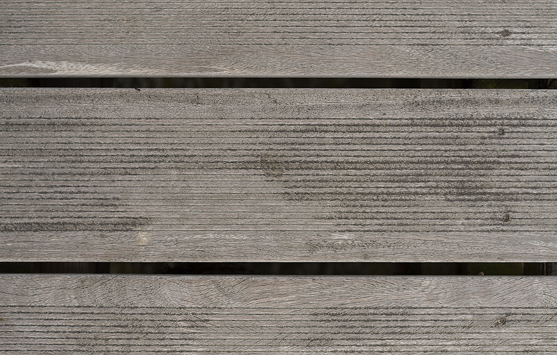 » The mechanical properties differ considerably from material to material. The wood materials oak, robinia, bankirai, azobé and heat treated wood (Thermowood) have shown a clear tendency to split at the edges and in the grooves. Grooved material also seems more inclined to split than non-grooved. It is worth bearing this in mind when choosing a material for a jetty deck, terrace or park benches, for example.