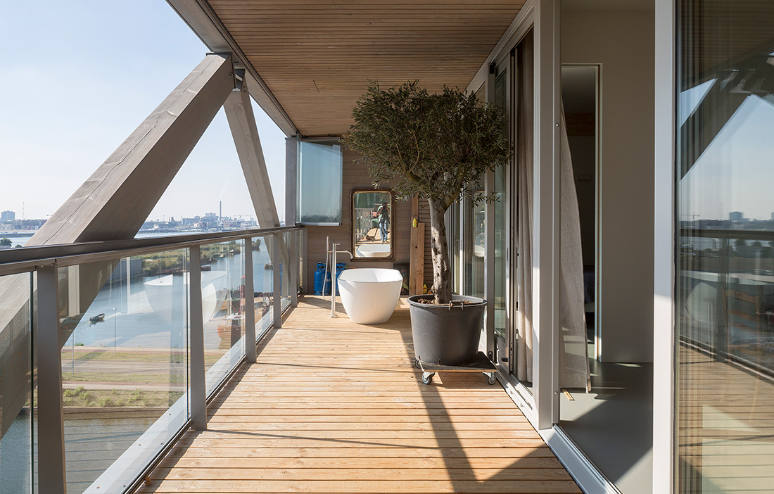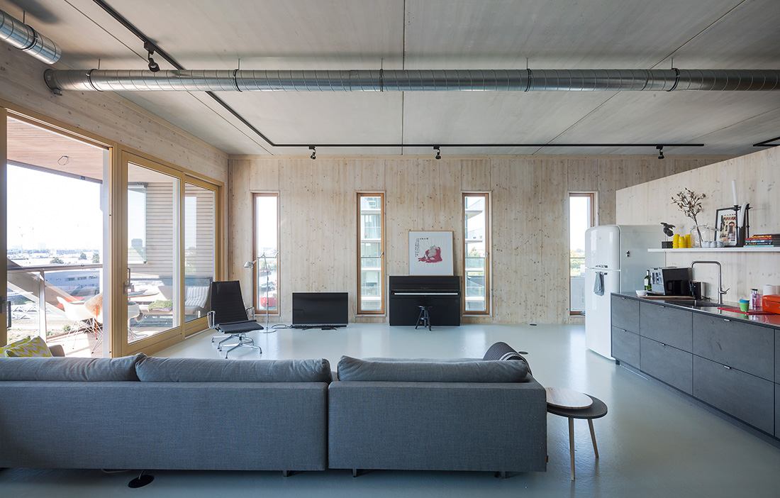 In the tallest wooden building in the Netherlands, Patch22, the apartments are sold completely empty. With a new floor structure, the owner of the apartment can lift the floor to run plumbing and fit other installations however they like. Adjusting and re-arranging an apartment has never been so flexible. The concept was developed by architect Tom Frantzen, who is also the developer along with contractor H2O.