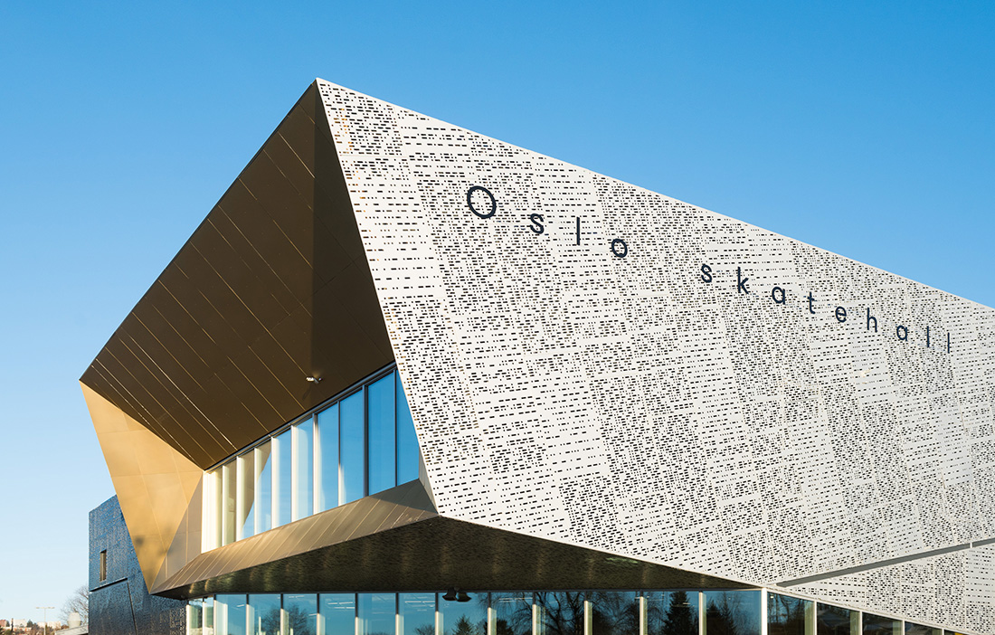 The centre comprises a large hall and an outdoor facility. The building has a clear industrial feel and is located in the Voldsløkka district, on the border between the city and the suburbs. The large glazed overhang is intended to make the building feel inviting to skaters and neighbours alike.