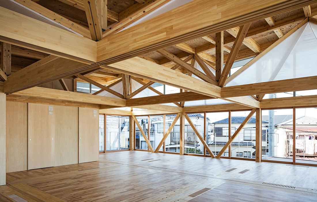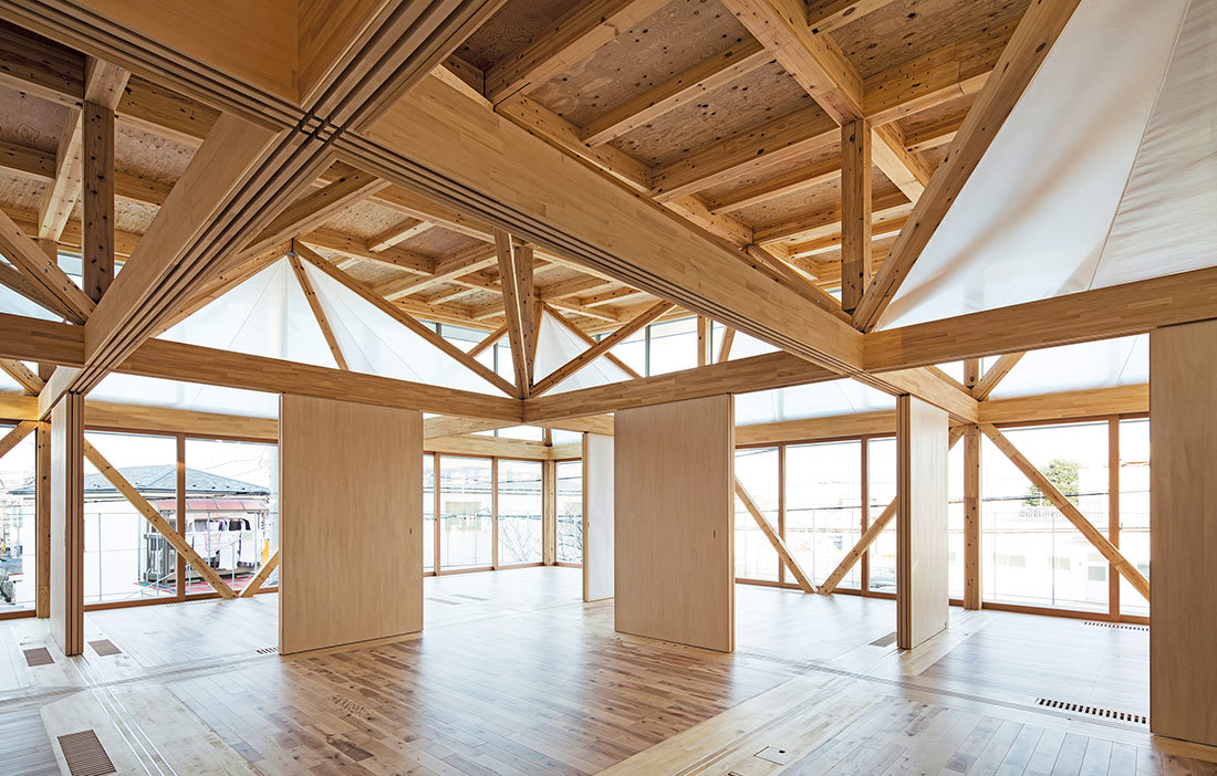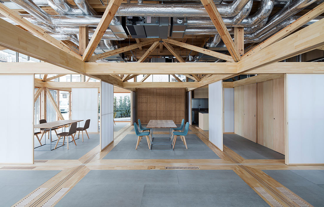 Japanese architect Aki Hamada also took on the challenge of using wood flexibly when creating Substrate Factory Ayase. The building is situated in the city of Ayase in the Japanese province of Kanagawa. Here, factory buildings and apartment blocks stand side by side in some form of co-existence. Aki Hamadan chose to use wood as a way to better convey the relationship between factory and housing.
