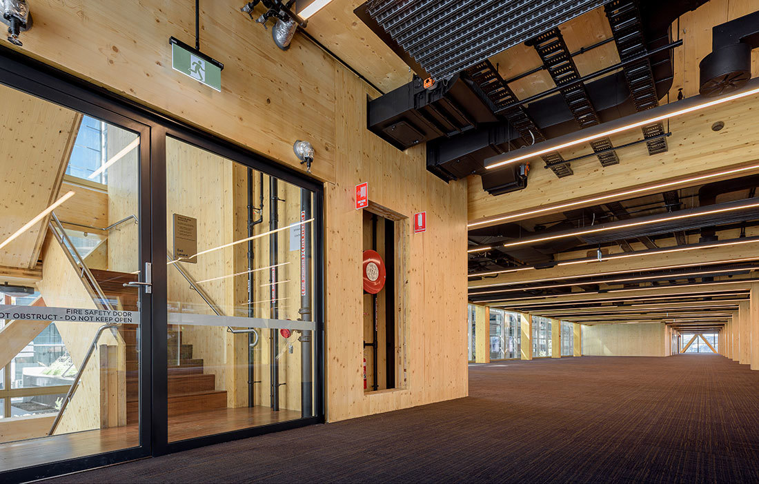 The latest addition to the Bangaroo cityscape has its roots in the past but with the addition of the very latest in design and technology. The aim of this is to ensure a long and sustainable life and to enable easy repairs, additions and ultimately disassembly. The choice of construction material is in a way linked to Sydney itself and this part of the city’s close ties to the ocean. The harbour served as a transshipment port and wood was the material used to build warehouses, jetties and bridges.
