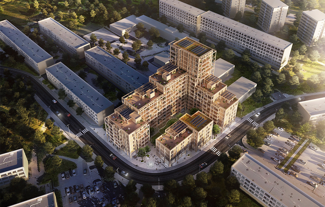People are increasingly realising that wood is good for people’s well-being, and when planning new developments, exposed wood is becoming the order of the day. A prime example is the winning entry in an architectural competition in Sundbyberg outside Stockholm, where a new development focusing on sustainable living is being created in the district of Ör. The design, created by Folkhem and Arkitema Architects, has the express vision of turning the spotlight fully on wood.