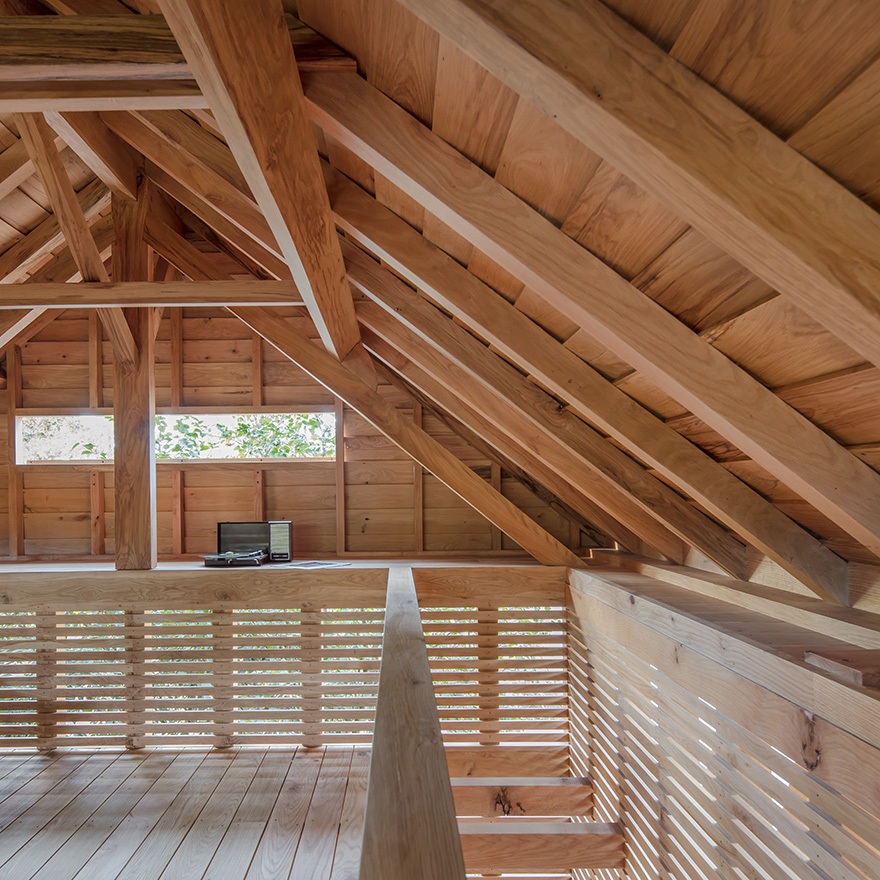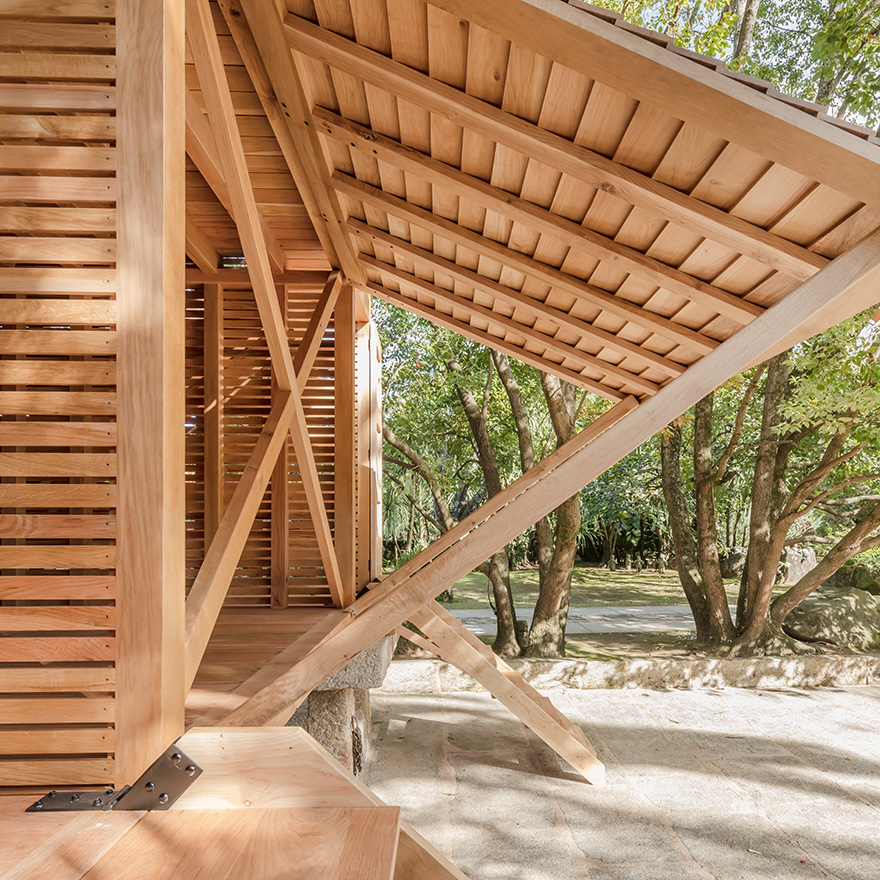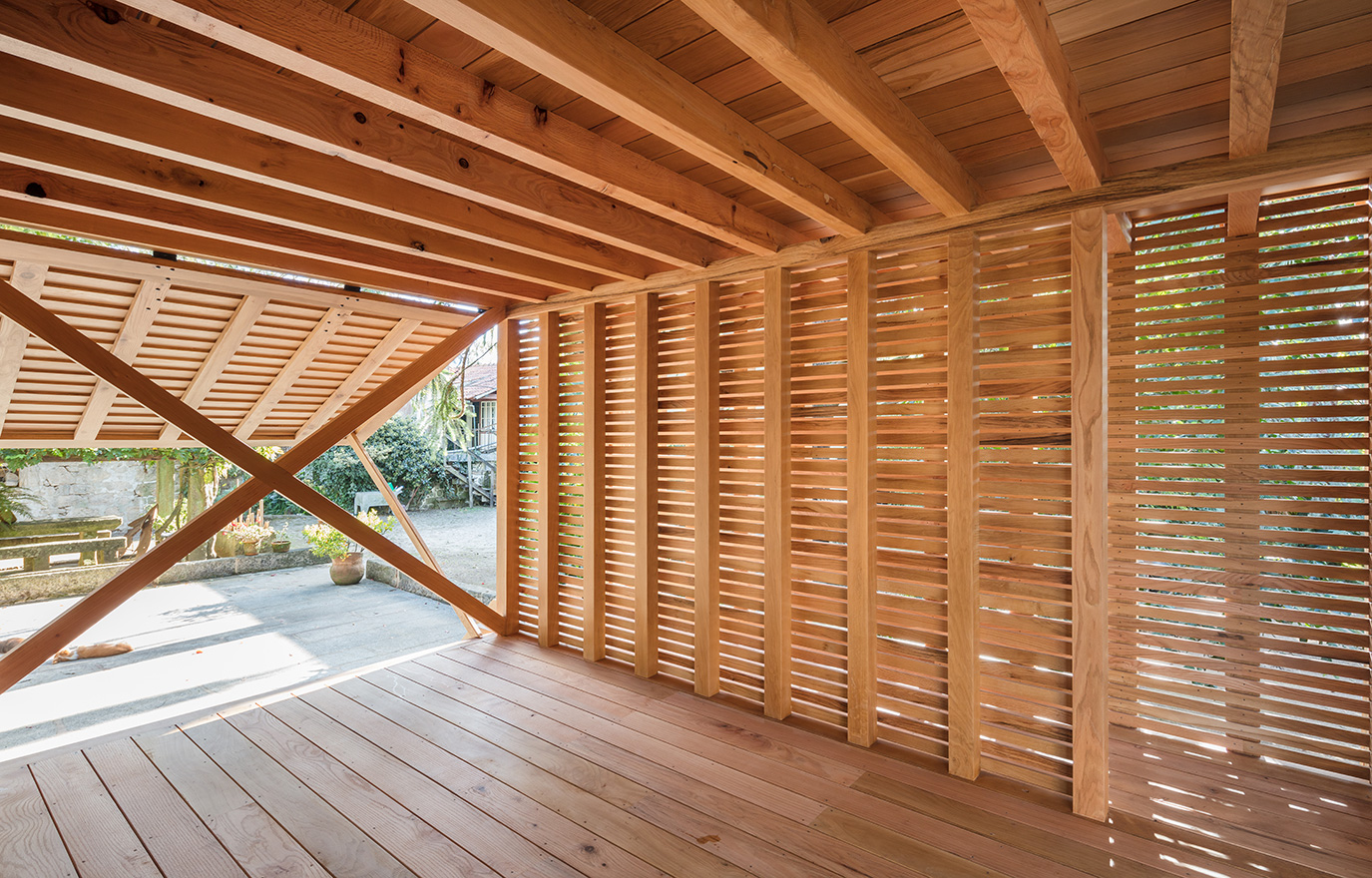 An old granary in northern Portugal has been given a new lease of life. These two rooms were built back in the 11th century as a space to dry and store the year’s harvest. In the roof there was also a dovecote where the farm’s tame doves lived. The barn was built in oak but the structure was under-engineered and without maintenance it soon fell into disrepair. The outline shape has, however, been preserved, largely thanks to the steel chains that were attached to nearby trees and have kept the frame in place over all these years. This has allowed the whole building to be renovated piece by piece, recreating the same advanced design and features of old. For safety reasons and in order to adapt the building to its current uses, the architects at Tiago do Vale were, however, forced to make some minor adjustments.