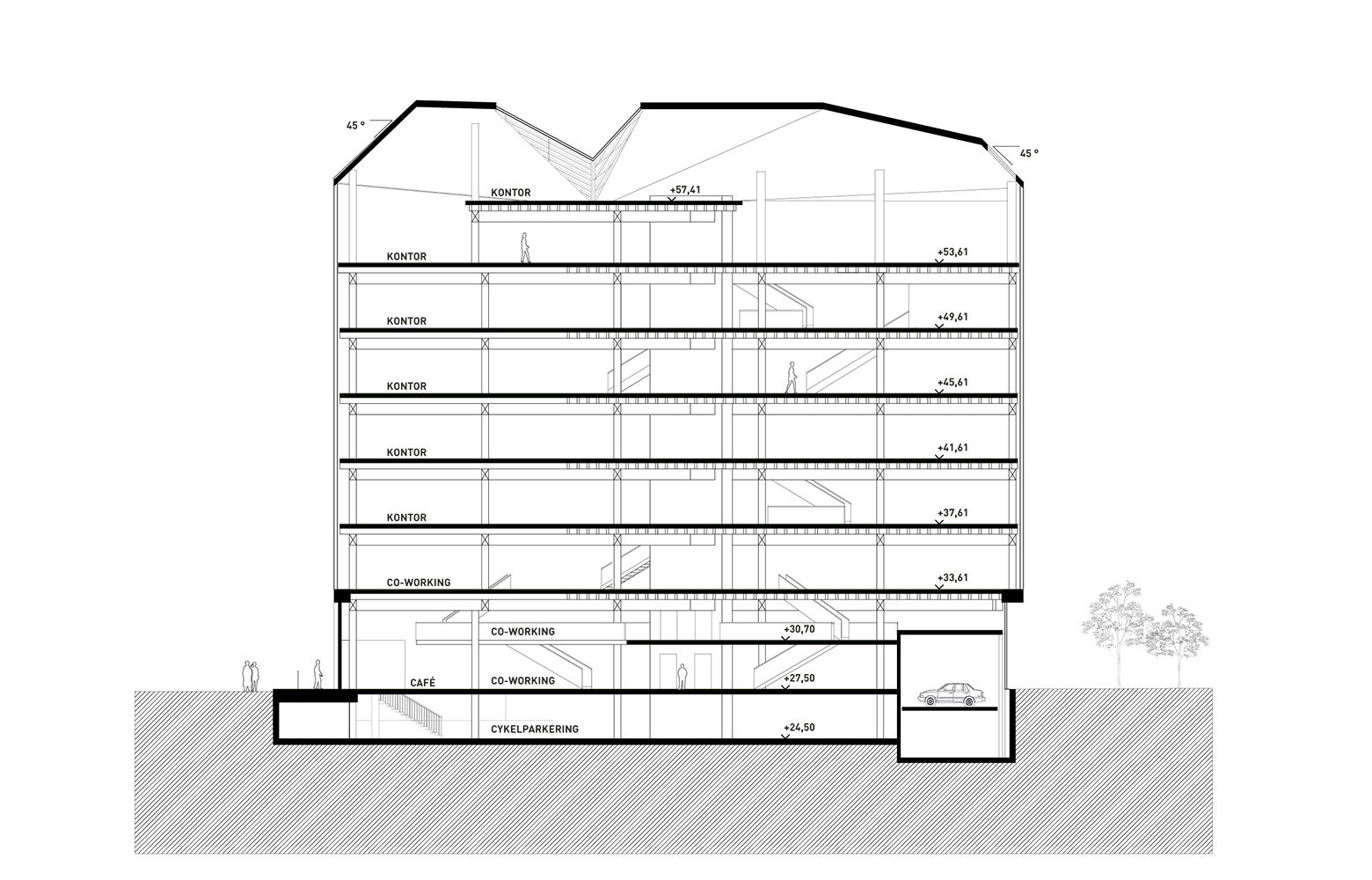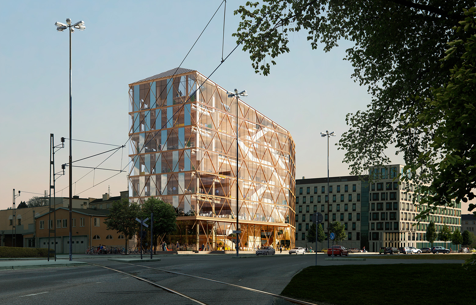 How can municipalities build more quickly and achieve better results for their construction projects? Two years ago, Örebro became the first municipality in Sweden to invite architectural practices to apply for land allocations, instead of the usual developers. Utopia Arkitekter was selected from the 13 applications, and they have since brought in additional contractors to jointly develop the 1,200 square metre plot. Rising seven storeys high, the new office building occupies a key position in the cityscape, close to the central train station.