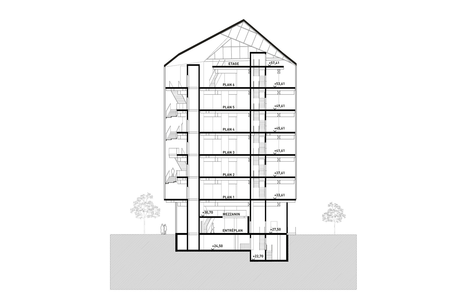 For environmental reasons, the architects aim to make minimal used of concrete and instead have chosen engineered wood for load-bearing elements such as the structural frame and the floors, with the building’s wooden frame designed to be left exposed. Wood is a prominent feature both inside and out, as the frame and the stairs will be visible through the glazed façade on one side.