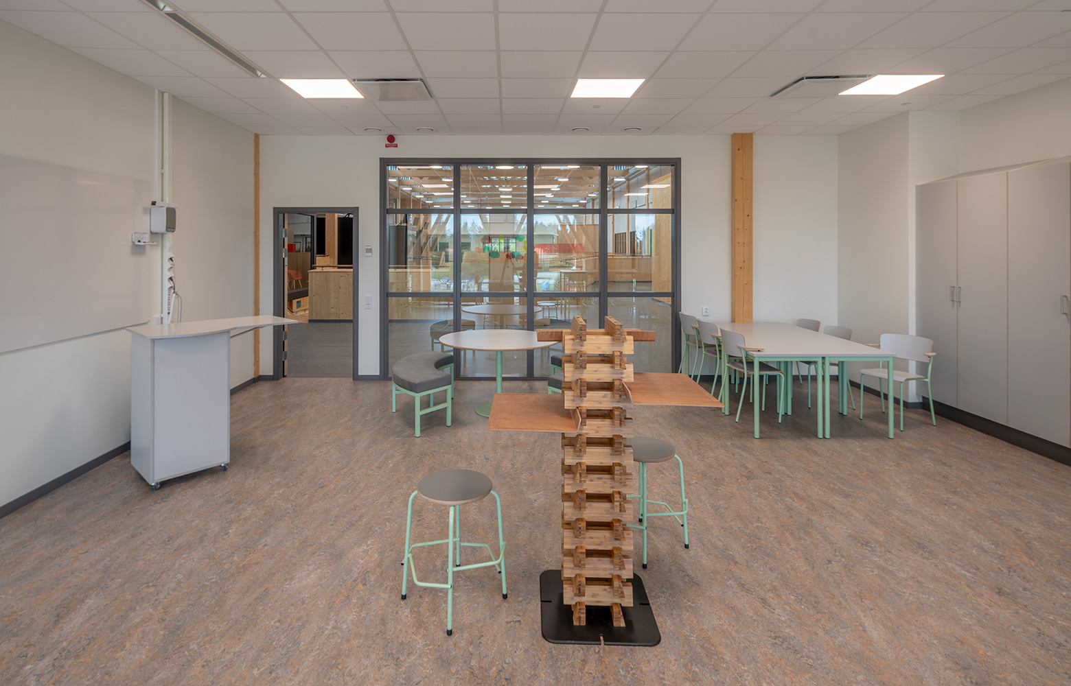 “It has ended up as an extremely good combination, where we’ve chosen wood as much as we can, but brought in some other materials due to sound, moisture, fire safety and cost considerations. In our experience, however, it’s possible to keep costs down if you include wood as an option right from the start. Here the wood in the structural frame, for example, has also become part of the interior design,” says Emma Sundelin, project manager at Skellefteå Municipality.