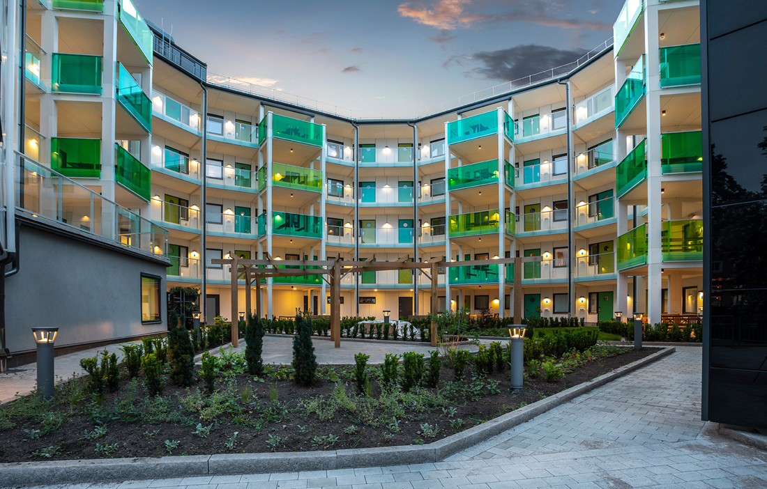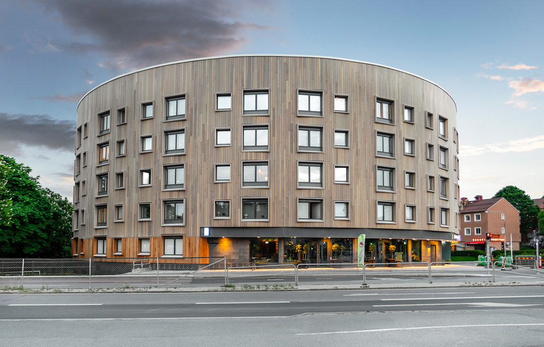 Linköping will soon be gaining its first apartment block made from CLT. Local developer Lindstén Fastigheter is erecting a five-storey building in Vallastaden with 69 rental apartments of varying sizes. At almost twice as many as the original plan for rectangular volumes was going to provide, this figure was made possible because of the almost closed circle design. The ambition behind Valla Berså is to show that apartment blocks can be built in wood, embrace exciting architecture and be sustainable.