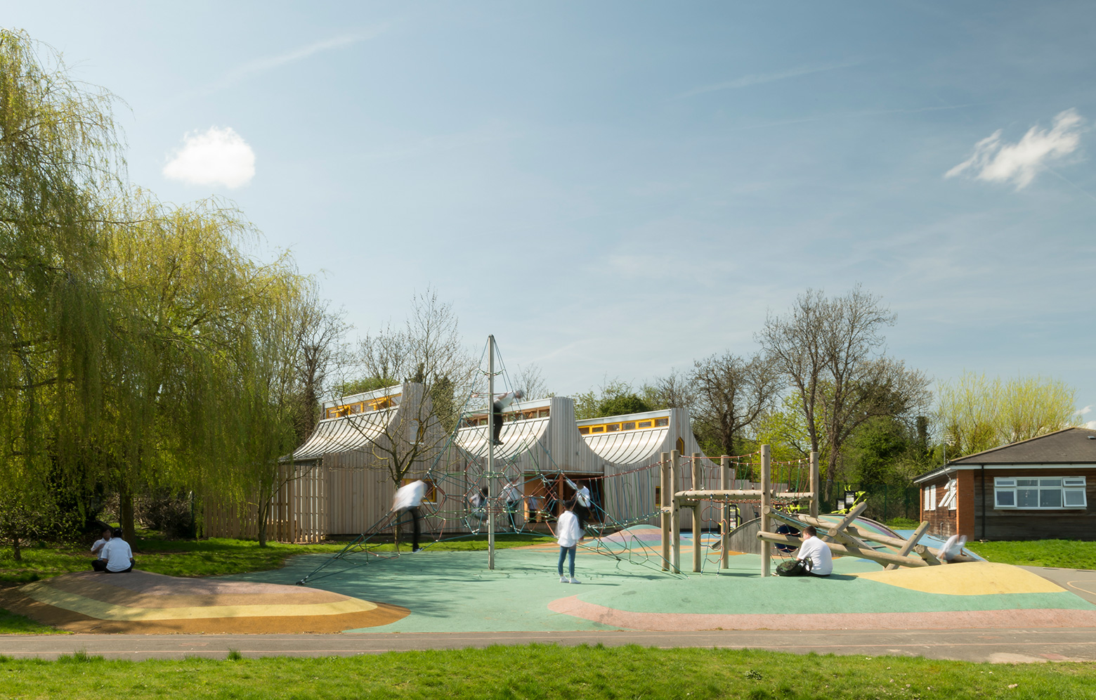 A building that connects two worlds, the real school world and the secret garden that echoes the fantasy world of Narnia. This was what the pupils at Belvue School outside London wanted from their new premises, and Studio Weave took their wishes on board when designing the new part of the school. The premises had to be adapted for children with special needs, plus they needed to be located between the existing main building and the nearby woods, of which the school is custodian, giving the children clear contact with nature.