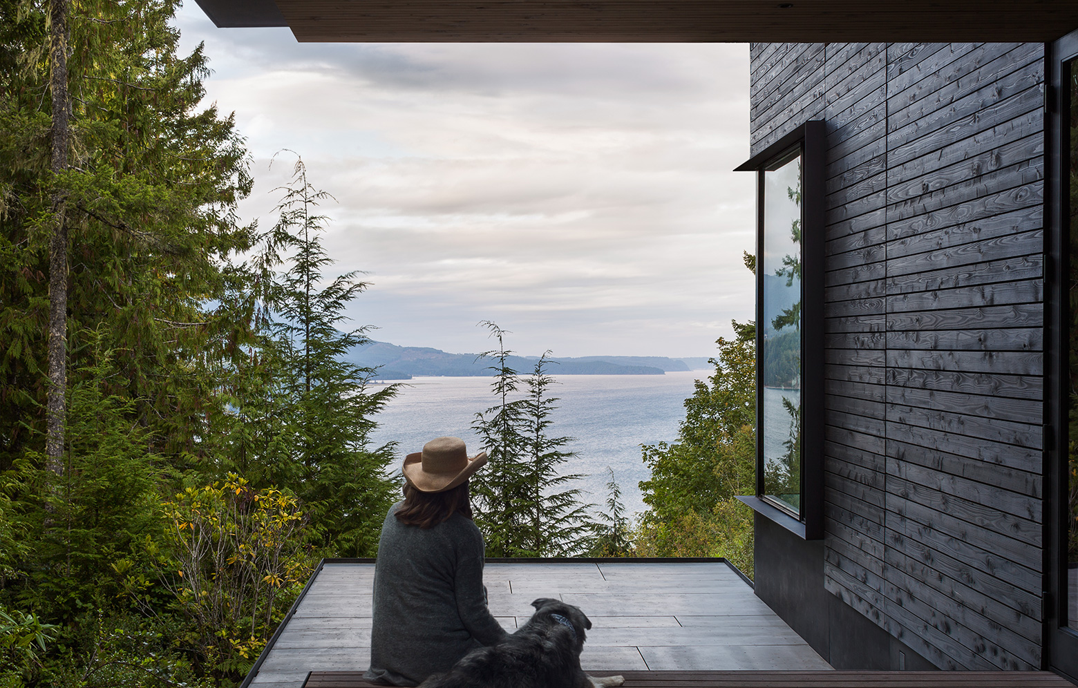 Modular in design, the cabin is supported on four concrete posts. This allows it to be erected even on sites that large-scale machinery can’t reach. The modules are made from 100 percent recyclable material, and the connection to nature continues inside, with flooring in Douglas fir and a cedar bathroom. Between the supporting frame sit wall modules of pine with an interior cladding of insulating cork.
