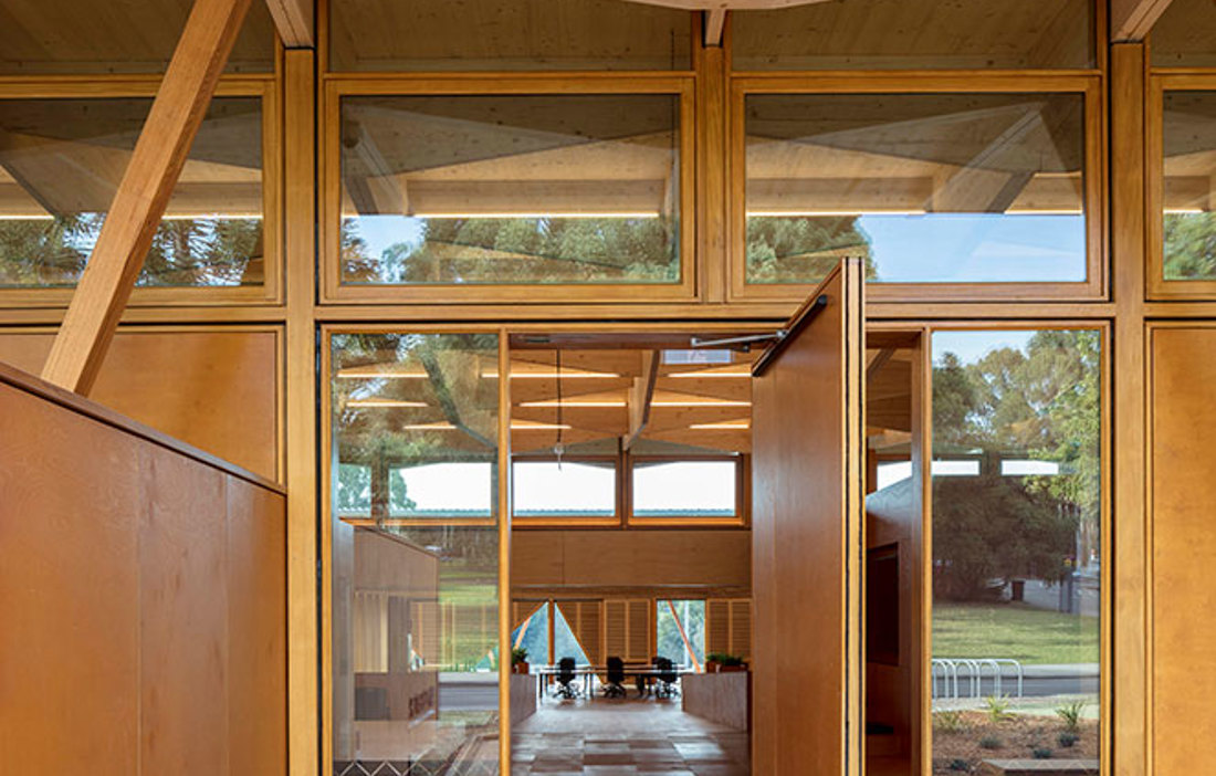 The whole of the Incubator uses a harmonious palette of materials comprising several different types and grades of wood. This helps to create the warm, light inviting feel that Architectus wanted. The Incubator is intended to be a pleasant and inspiring place that people want to return to. However, using several different types and grades of prefabricated wood also posed challenges for the architects.