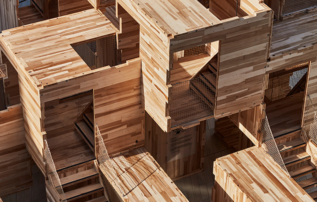 A playful design and a vision in CLT. The three-storey labyrinth-like building Multiply that was exhibited at the London Design Festival in September was created to provoke debate about the two major challenges of the time: the need for new housing and the importance of combating climate change.