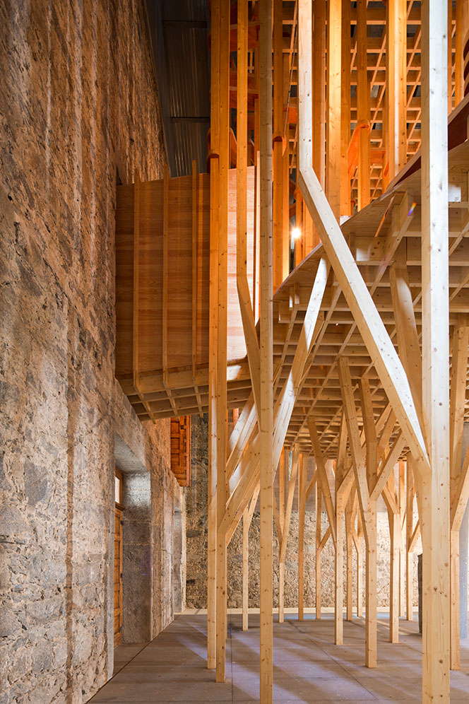 “With a renovation project like this, you can be sure that you’ll hit on surprises and unexpected problems. Luckily, wood is a forgiving material that is easy to work with and make changes to on site. Wood is also a material that touches people, and in our case offers an exciting contrast with the existing stone exterior,” says architect Clara Murado.