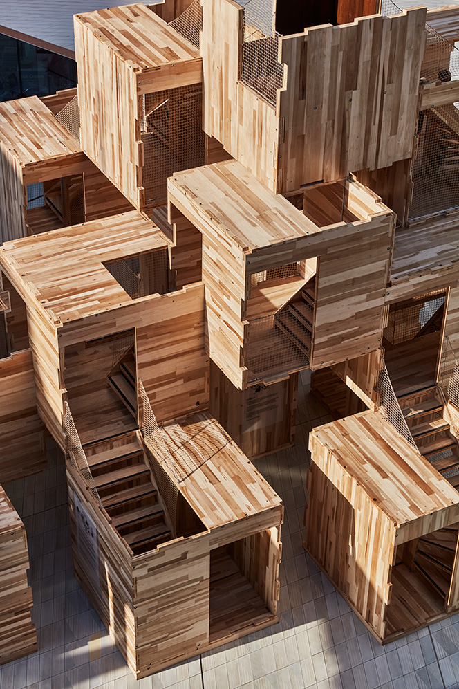 A playful design and a vision in CLT. The three-storey labyrinth-like building Multiply that was exhibited at the London Design Festival in September was created to provoke debate about the two major challenges of the time: the need for new housing and the importance of combating climate change.