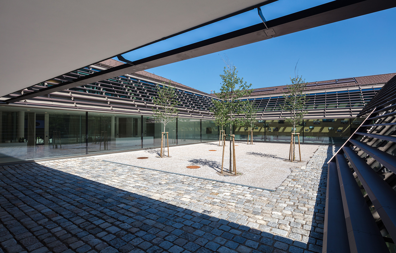 A 90 year-old locksmith’s store needed a new head office. Part of the brief was to reflect both the company’s spirit of innovation and its roots. The winning design came from Delugan Meissl Architects, and was inspired by the typical square buildings of northern Austria with their inner courtyard. Arranged around an atrium, the sturdy building offers great internal flexibility with moveable walls. The floors and stairs are made from light oak.
