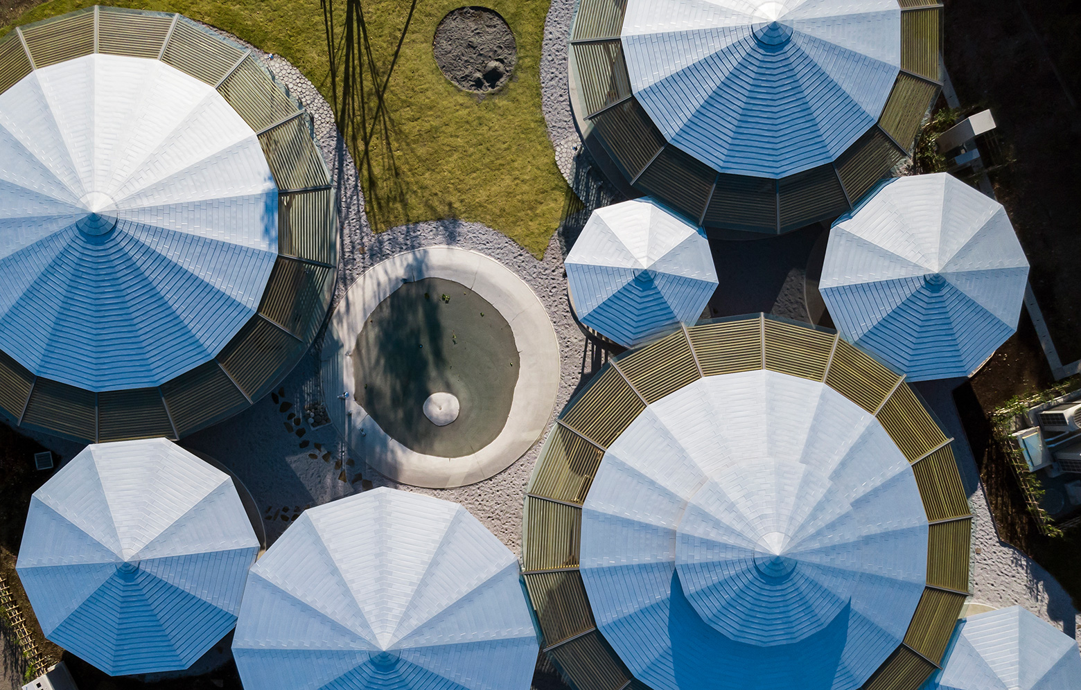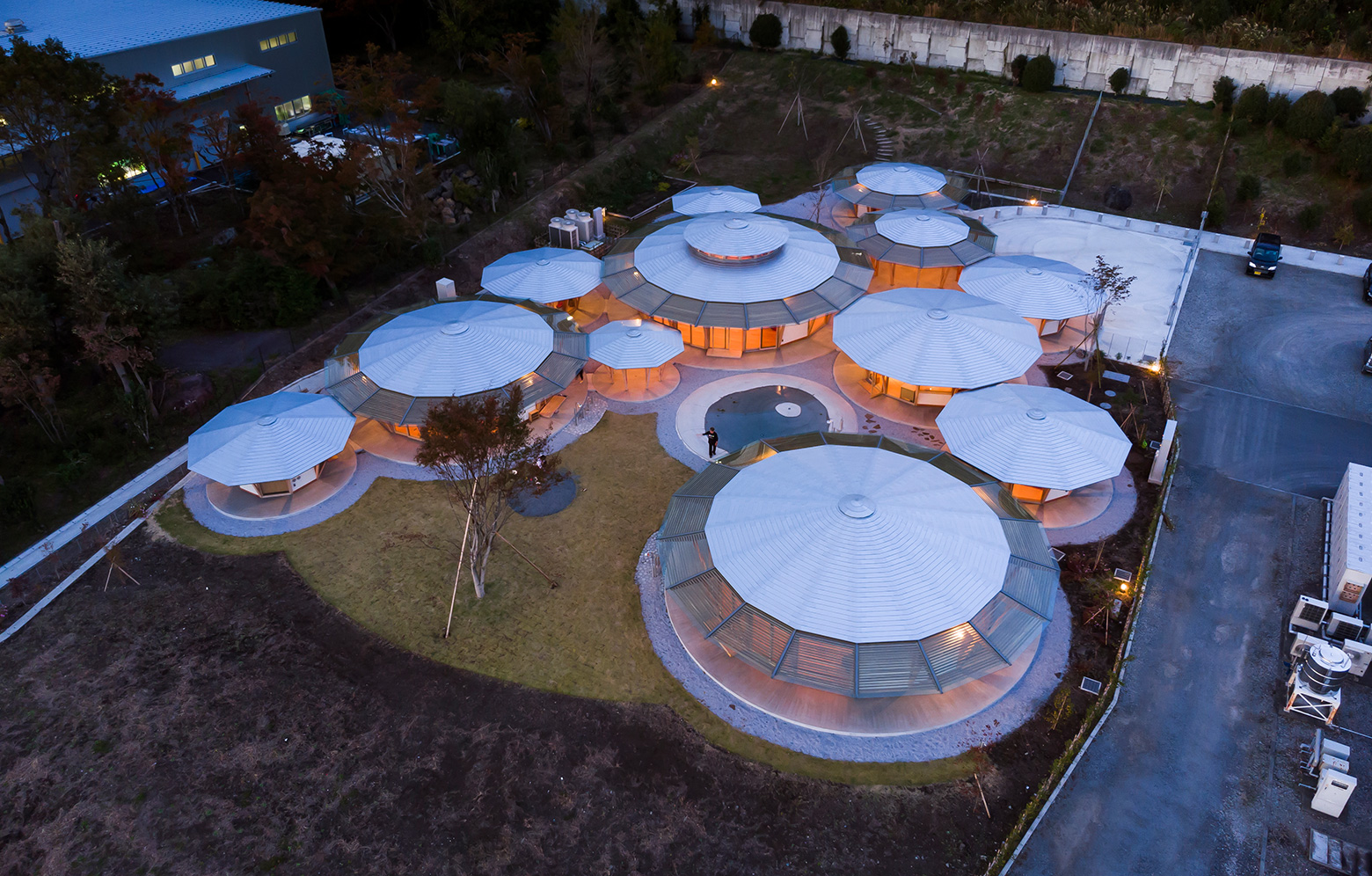 The rounded buildings of the new preschool in Fuji, Japan, are reminiscent of soap bubbles, with each little bubble forming one room, with one function and no internal partition walls. Round buildings are often criticised for being difficult to furnish and having a structure that is complex to build. But according to Tezuka Architects, there are also many benefits. Above all, the sight lines around the preschool are excellent, since the design makes it easy to see between the various volumes. This is one of the most important requirements at a preschool, where staff always need to keep an eye on the children. The shape also encourages imagination and movement in the children.