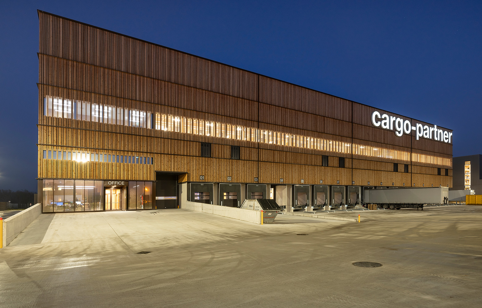 Externally too there is a notable difference between Cargo-Partner’s modern building and the huge logistics centres, all made from the same mould, that are usually lined up outside international airports the world over. The façade in decorative larch cladding helps to create a vibrant surface that changes with the weather, seasons, time of day and age.