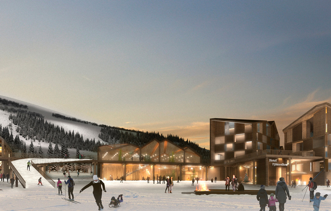 Fjätervålen in northern Dalarna is set for a transformation into the Nordic region’s most sustainable mountain resort. Fjätervålen lies in a nature reserve, which makes climate issues important when planning the new destination. Carefully considered architecture and development is vital in ensuring that the mountain environment is kept as unaffected as possible. It is already clear that the focus is going to be on modern wooden architecture, with a plan for all the buildings to have wooden structural frames, and the initial sketches also show façades with a distinctly wooden feel. There will be a new hotel and resort centre, a restaurant, a shop and a spa, as well as housing, all with both lifts and ski trails on their doorstep, so the car can remain parked up for the whole of a stay.