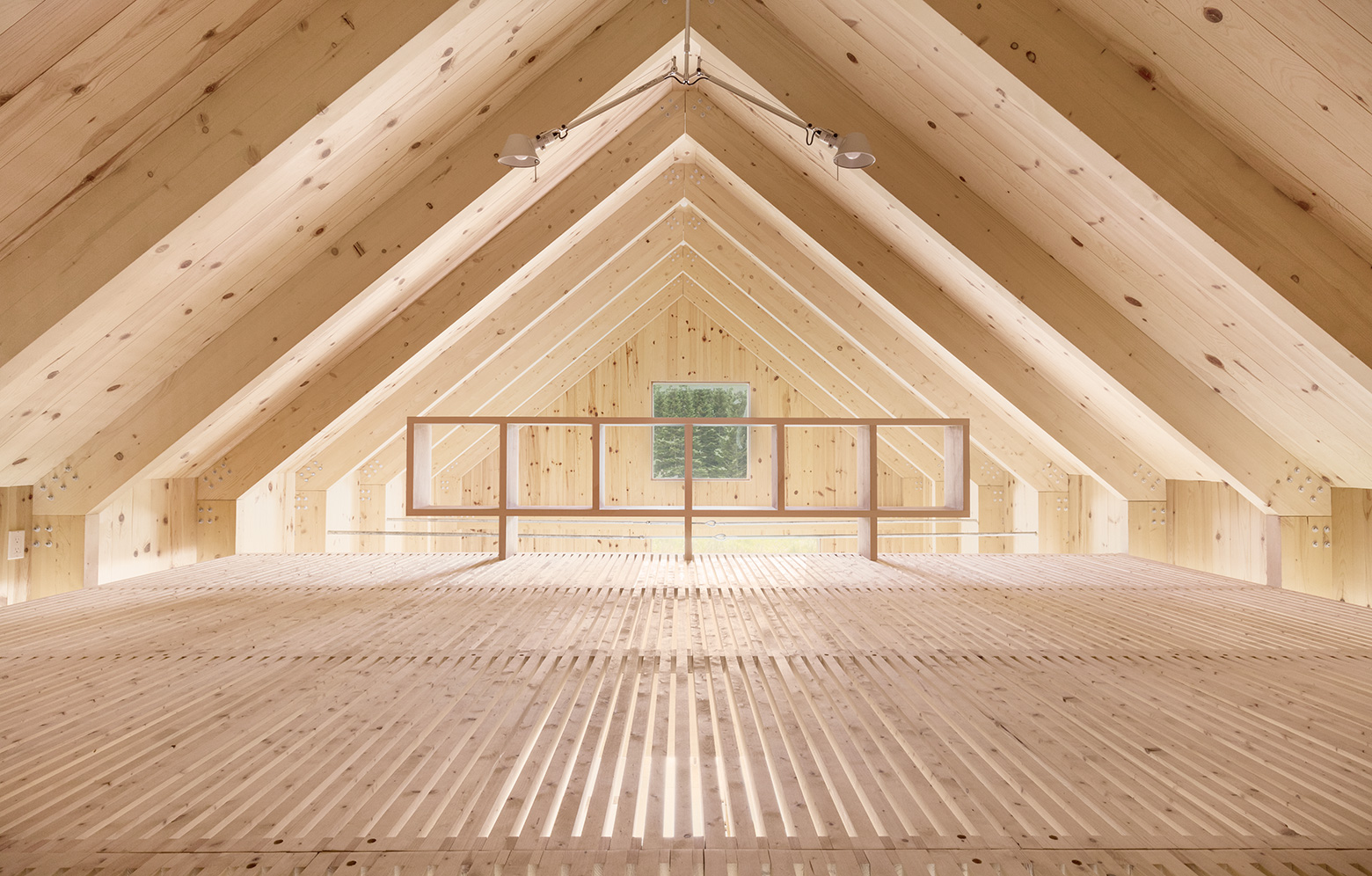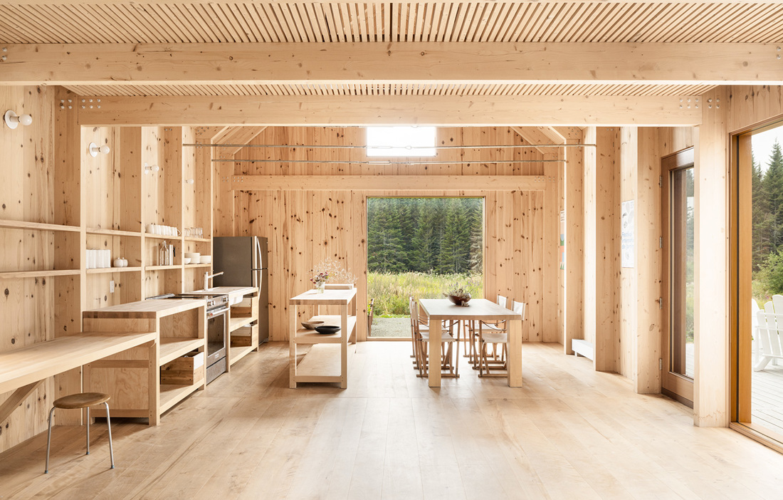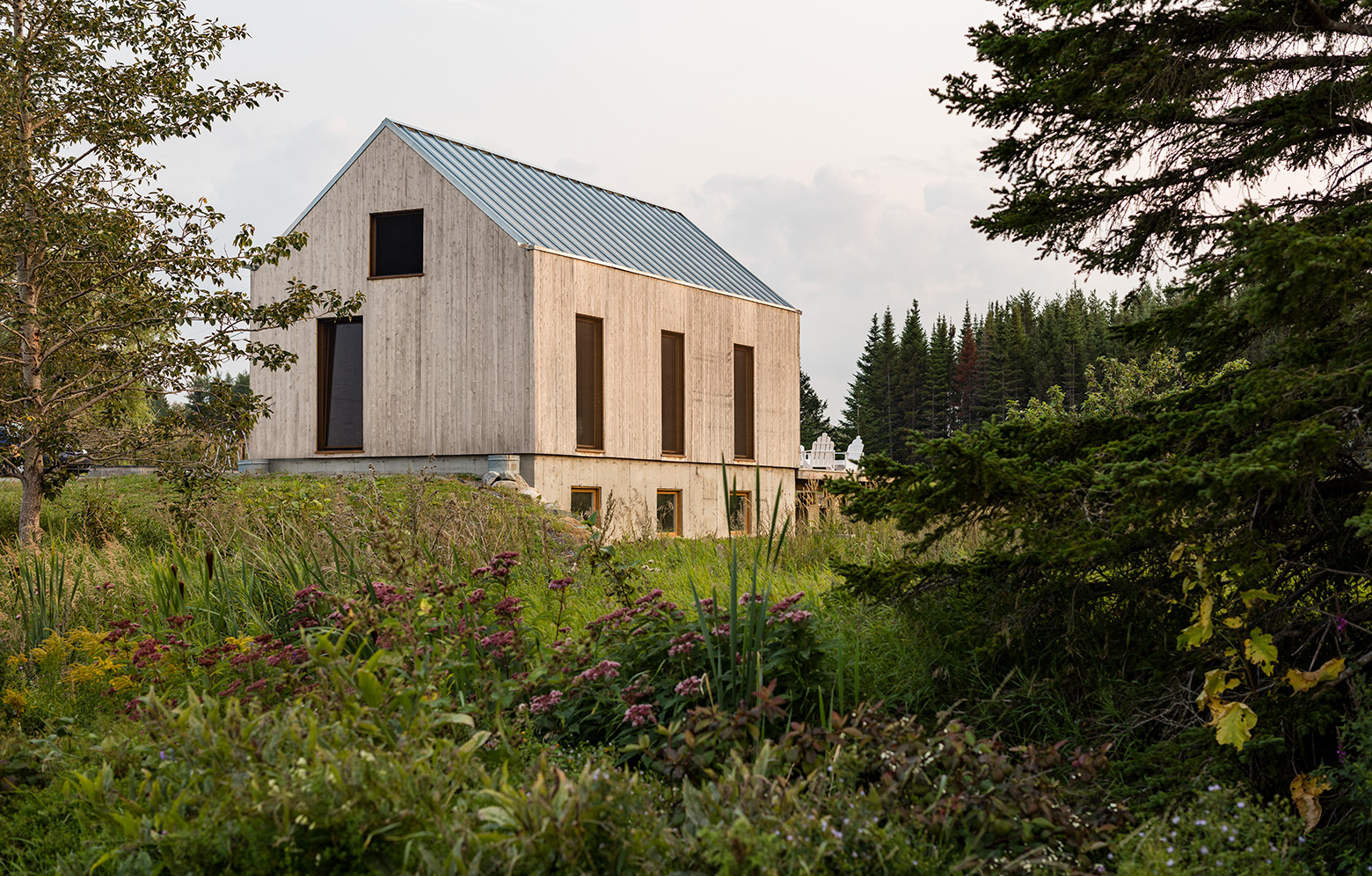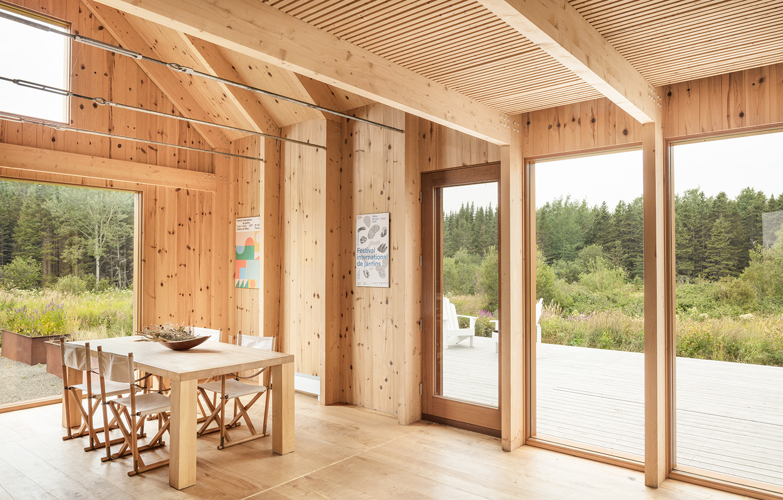 Every summer, architects, landscape architects and designers descend on the Reford Gardens in a rural area of Quebec for the International Garden Festival. Festival participants sometimes spend many months on the site and need somewhere to stay during that time. Atelier Pierre Thibault has now created a simple and authentic building that offers visitors the comfort they require. The rooms are light and airy, with large windows for maximum daylight, and the upper floor is open to the roof ridge, giving its large dormitories and bedrooms a spacious and open feel.