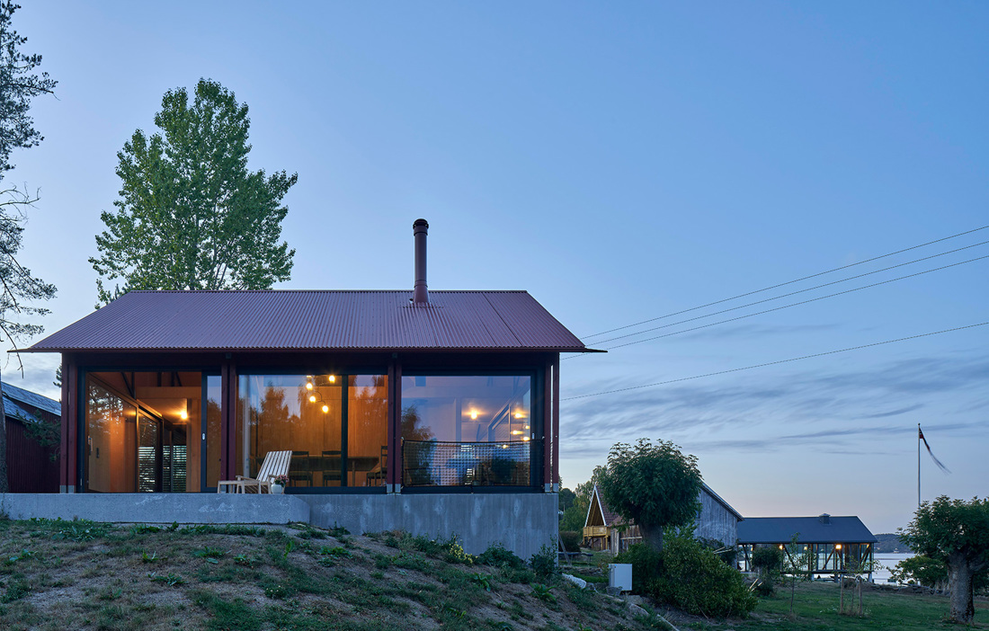 Right on the water in Sandefjord, Norway, stood an old sawmill. When converting the 81 square metre building into a modern holiday home last year, the architects embraced its history. The open spaces and large windows, which were necessary to move around large quantities of timber, were retained but given a softer, more modern feel.