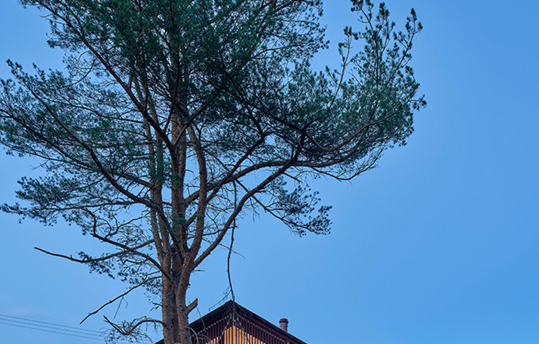 The open and welcoming design also conceals more private rooms. The building’s bedrooms are well hidden from outside view, and their walls and ceilings have been finished with wood cladding for a pleasant and inviting feel.