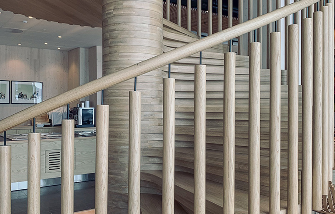 “This means that the building is heavier towards the top, which is necessary to reduce its movement in strong winds, for the comfort of residents,” explains Rune Abrahamsen, CEO of Moelven Limtre, which supplied and installed glulam beams and structural elements for Mjøstårnet.