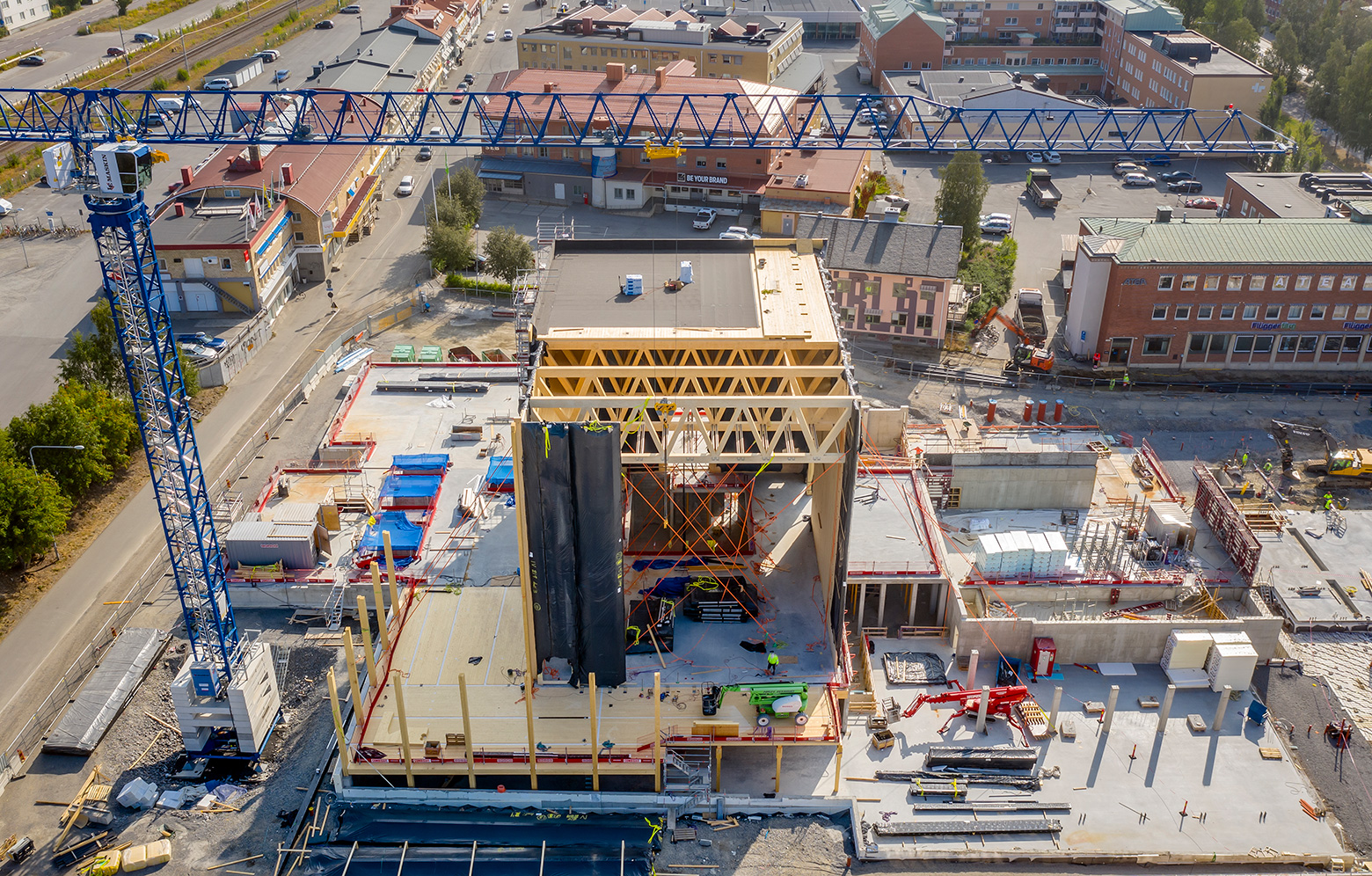 June saw the first parts go up for the frame of Sara Kulturhus, Skellefteå’s new arts centre. The 80 metre-tall building will rise to 20 storeys, which will make it the world’s tallest wooden building on its completion in summer 2021. The structural elements, around 10,000 square metres of CLT and 2200 cubic metres of glulam, are being produced at the Martinsons factory in Bygdsiljum outside Skellefteå and then transported to the construction site on the back of a lorry. The commission to deliver and assemble Skellefteå’s arts centre is the latest in a long line of major projects for Martinsons, which has considerable experience and has previously been behind a number of high-profile wood construction projects, in the form of schools, sports halls and housing all across Sweden.
