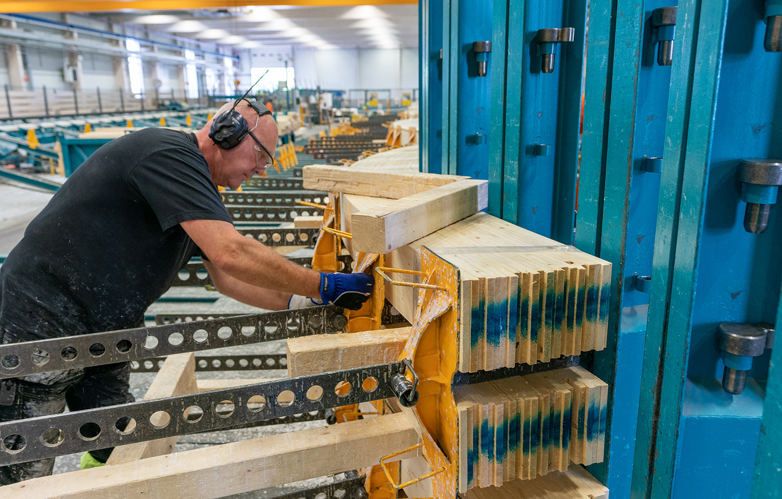 “In terms of glulam manufacture, many things are similar to when the first glulam beams were made here in Töreboda in 1919. The technique is still based on joining high quality timber to make strong and durable beams. However, both the technologies and the production processes have changed over time. Often during ongoing production and in collaboration with customers,” says Johan Åhlén.