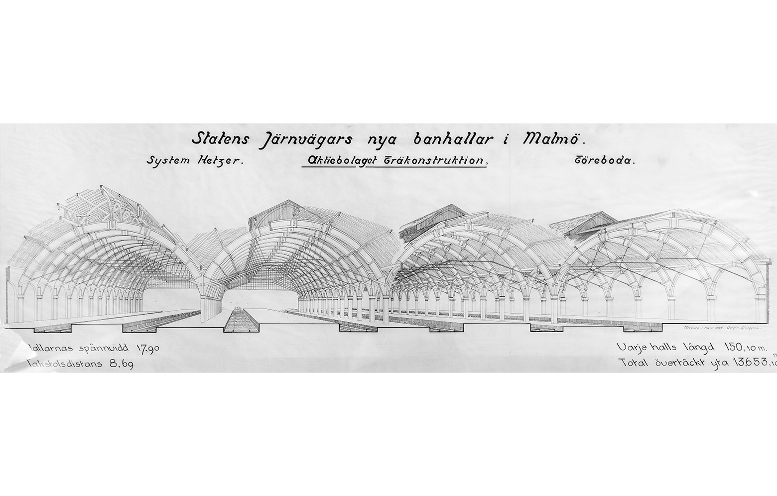 Around this time there was an extensive expansion of the rail network in Sweden, and AB Träkonstruktioner became an important supplier to the national rail company SJ, which in 1923 ordered glulam for Malmö Central Station’s train shed. The following year, AB Träkonstruktioner was declared bankrupt and the new company AB Fribärande Träkonstruktioner was formed. Their first order was for structural components for Stockholm Central Station, which proved an excellent start to the continued focus on roof structures in glulam.