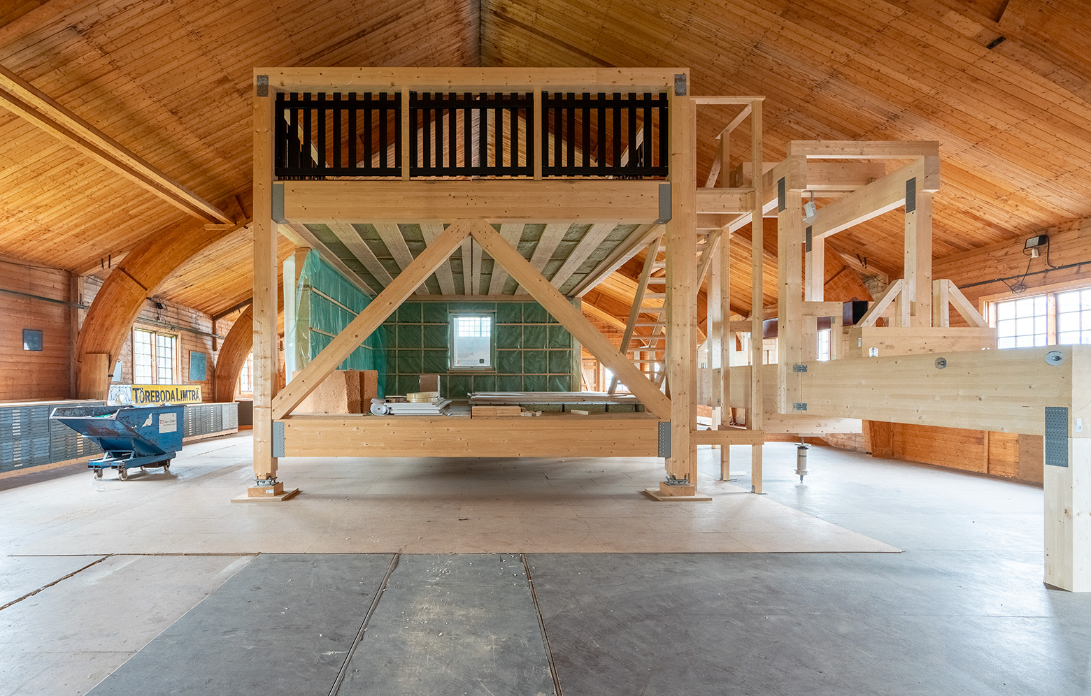 We end where we began, with the vigorous centenarian in Töreboda. In Sweden’s first glulam hall, Roberto Crocetti has built a test rig to try out advanced connections, floor solutions and beam designs. He is buzzing with ideas about how glulam can be developed and is open to combinations with other materials.