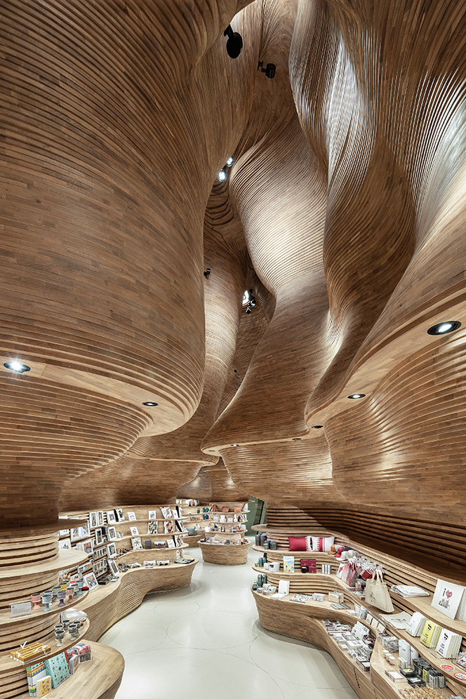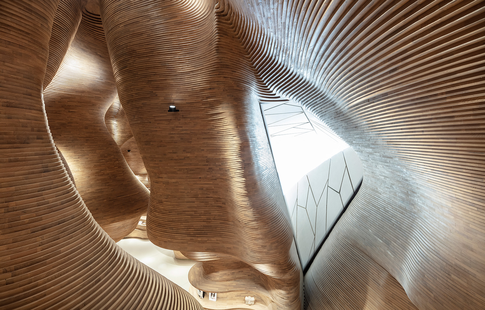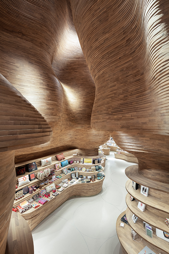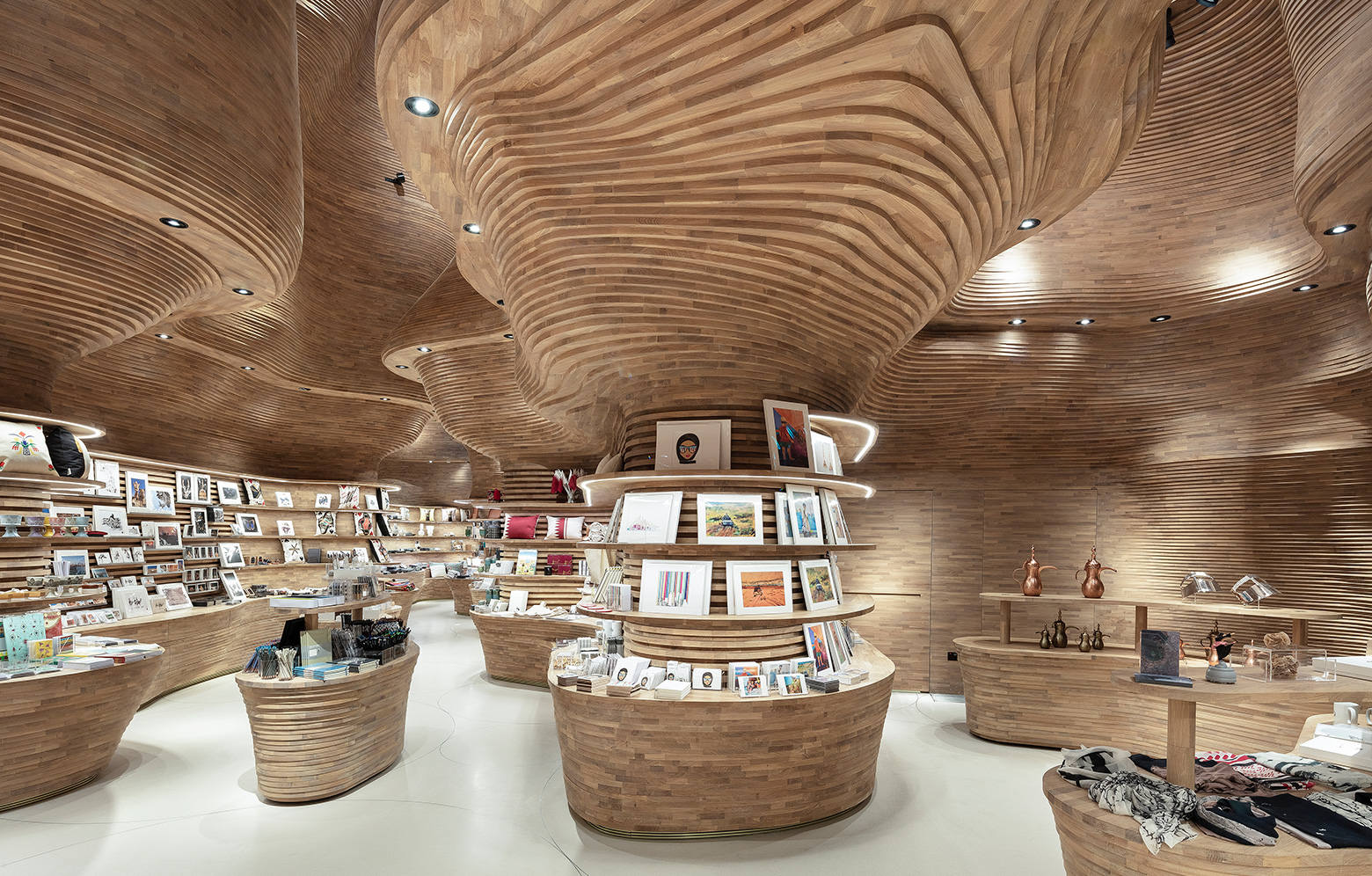 It has been called the world’s most beautiful museum shop, and with its billowing walls of European oak, the gift shop in the National Museum of Qatar is worth a visit in itself. Inspired by one of Qatar’s caves, Dahl al Misfir, which is famed for its mineral formations, Koichi Takada Architects have created an equally captivating space.
