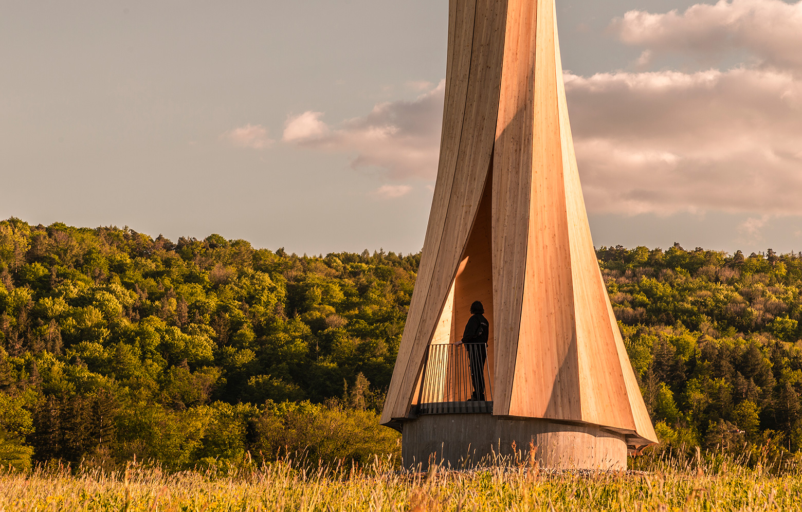 Bending a length of wood usually requires a mechanical process. But now the University of Stuttgart has developed a way for wood to adopt the required shape during its industrial drying process. Showcasing this is the 14 metre-tall Urbach Tower, produced for the Remstal Gartenschau exhibition. It comprises 12 components made from CLT panels that have shaped themselves. This is the first wooden structure to be developed in this way.