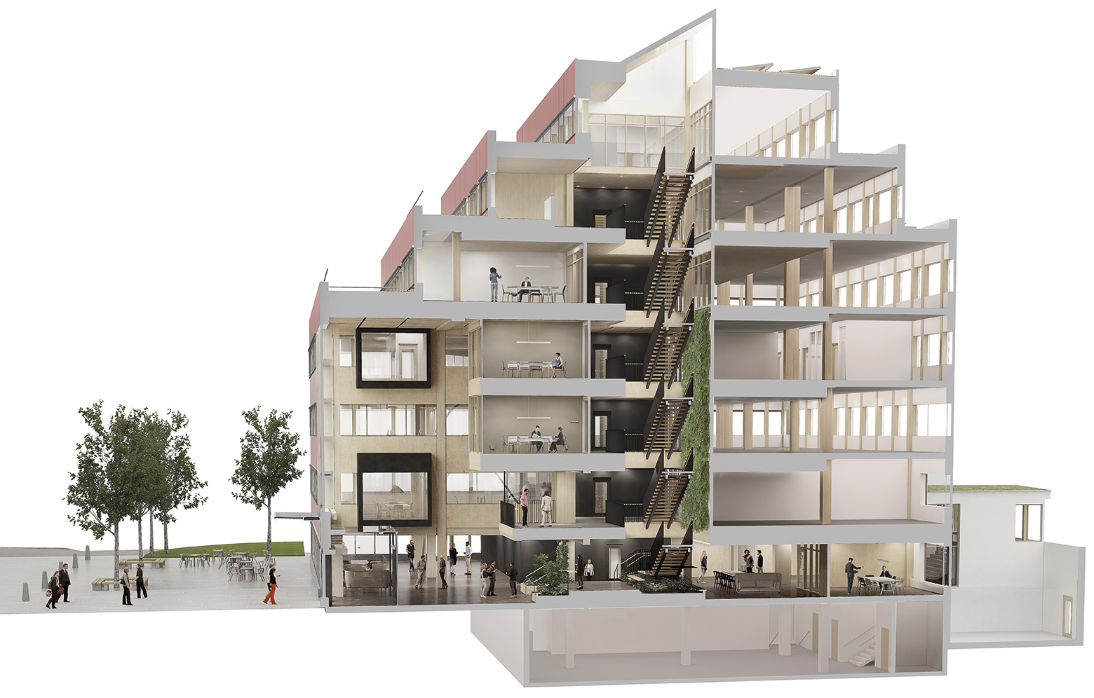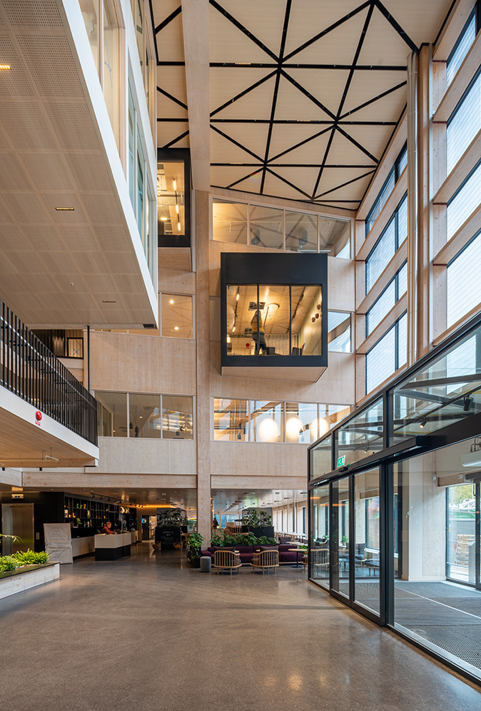 A Working Lab is at once a public and a private building, where the flow through the open entrance level invites innovative clashes between different skills and backgrounds. It is a lively space with a café, restaurant, meeting places and workspaces. Level 2 has a co-working area that people from outside can use for a fee. The five other floors are offices for tenants including Akademiska Hus itself and the national research institute RISE.