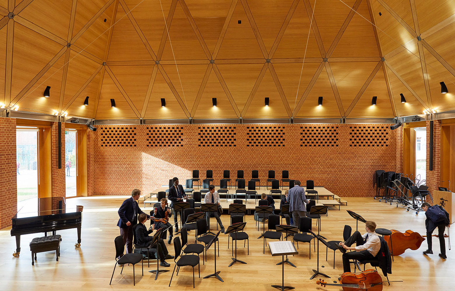 King’s College School has 1,400 students aged 7–18. The school was founded in 1829 and music has always played a prominent role. The new music school, designed by Hopkins Architects, was completed last autumn and is part of an ongoing development masterplan to improve facilities at the school in Wimbledon, UK.