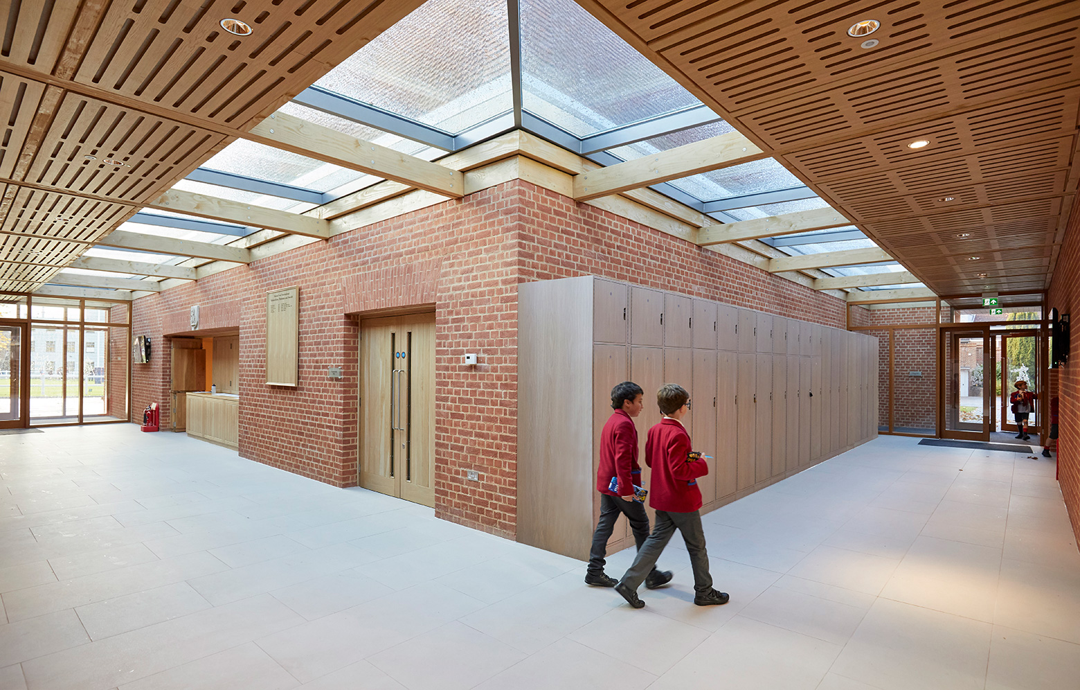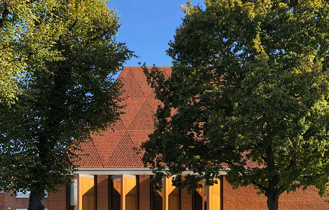 “We wanted to create a modern building that sat comfortably in the historic setting, rather than standing out. The combination of brick for the façade and wood inside helps with this, while also creating a warm feel and good acoustics,” explains Michael Taylor, chief architect at Hopkins Architects.
