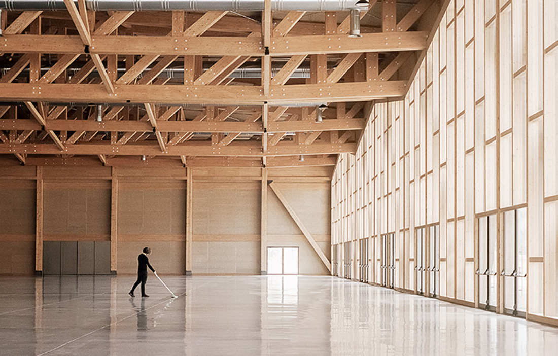 The acoustic properties of wood were an important argument in its favour, considering the kinds of activities the premises are intended to host – concerts, trade shows, theatre, lectures, sport, conferences and exhibitions.