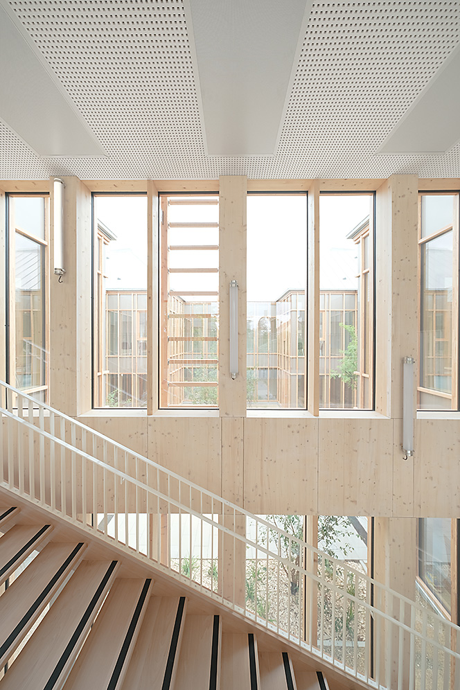 “The planting is a reminder of the medical centre’s health-promoting purpose, but it also contributes to natural ventilation of the building. Circulating the air via the surface layer of the ground makes use of the substrate’s natural warmth. This helps to keep the building cool in summer and warm in winter, without mechanical ventilation,” explains Marc-Antoine Richard-Kowienski, who also points out that wood has many benefits, as will no doubt have been seen this past spring, with the restrictions brought by the Covid-19 pandemic: