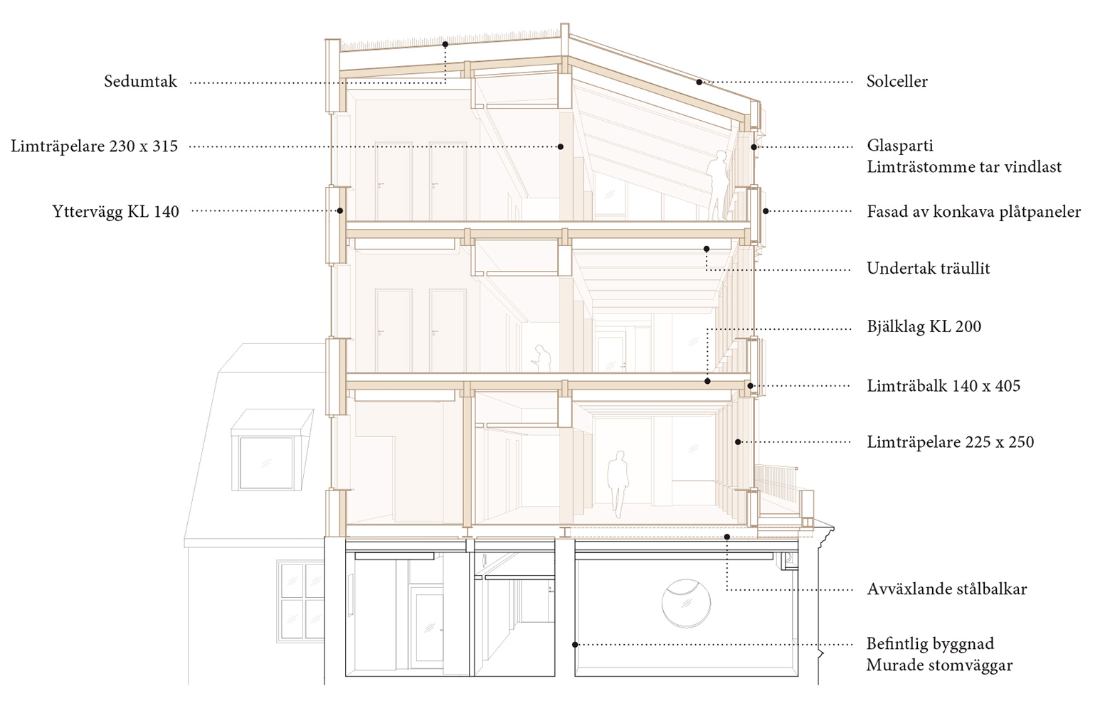“The drive for densification has helped, making upward extensions more common in attractive locations where more development is desired. And wood has clear commercial benefits in this respect. In addition to the material’s architectural possibilities, wood frames also have a significantly lower climate footprint. The fact is that wood is our first choice for the structural frame in all our projects these days,” says Gert Wingårdh.