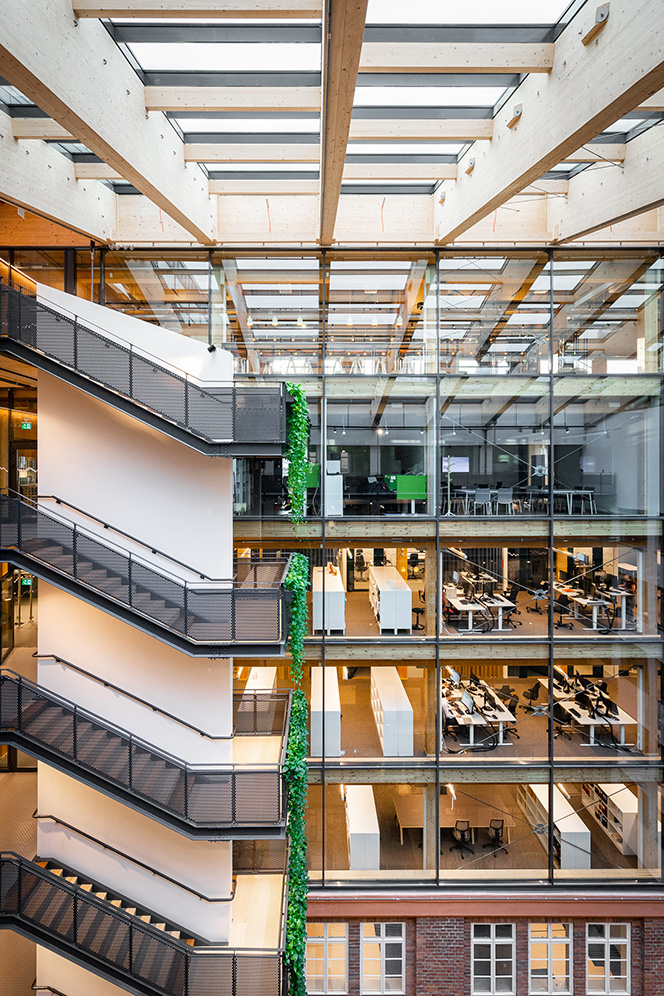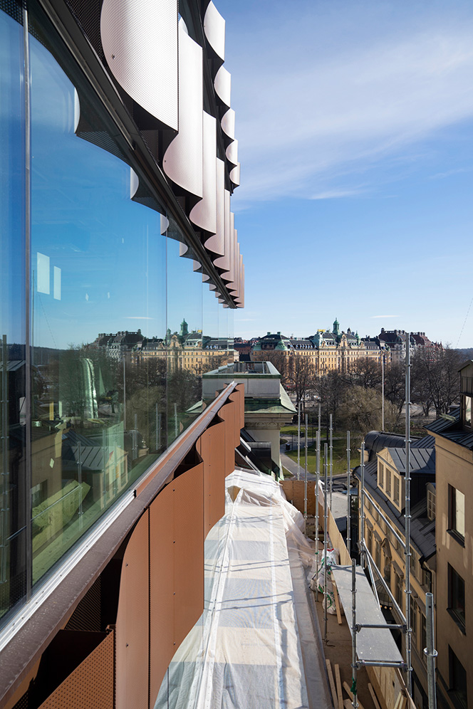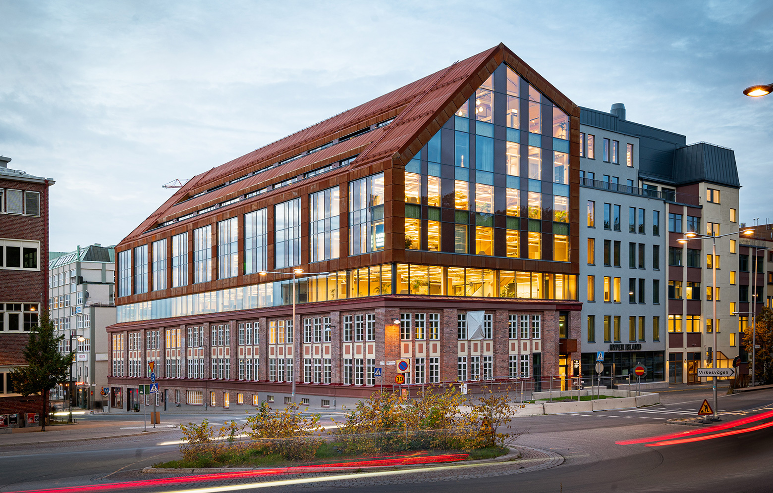 The structure, made entirely in wood, was supplied by local company Martinsons. Like the older parts of the head office, the façade is clad in copper.