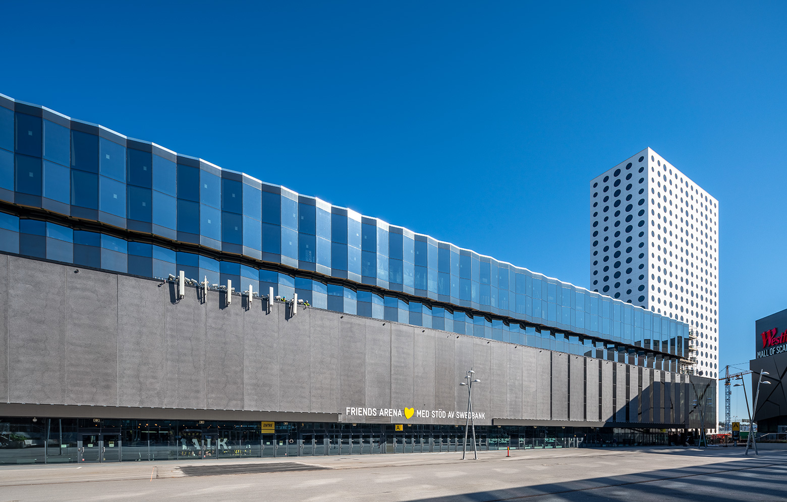 In Solna, just north of Stockholm, Arenastaden has taken shape as one of Europe’s most modern urban districts. As the area has developed and grown, demand for hotel rooms has also increased. This has prompted Quality Hotel Friends to expand its business with the addition of over 250 new rooms, located in a CLT and glulam extension designed by Wingårdhs. The new hotel rooms are spread across three floors on top of the lower section of the existing hotel, which is called Arena Gate.