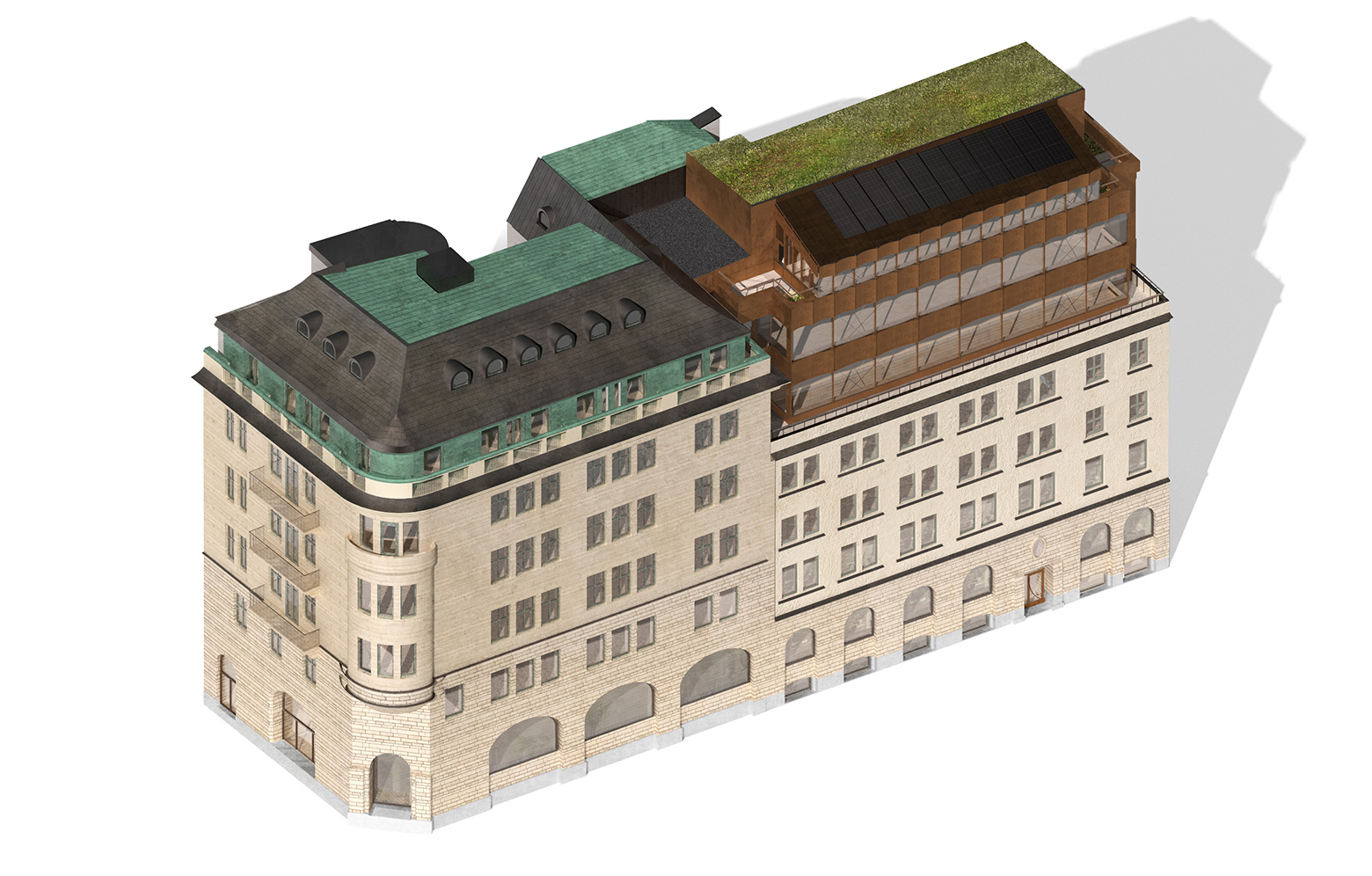 A prime example of how to pursue urban densification in a sustainable way and at the same time save both time and money is the Styrpinnen 15 property on the corner of Kungsträdgårdsgatan and Näckströmsgatan in the heart of Stockholm. The attractive fin-de-siècle edifice was designed by architect Erik Lallerstedt, and when it was built for Hernösands Enskilda Bank in 1889–1901, it marked the start of this district’s life as the city’s financial powerhouse.