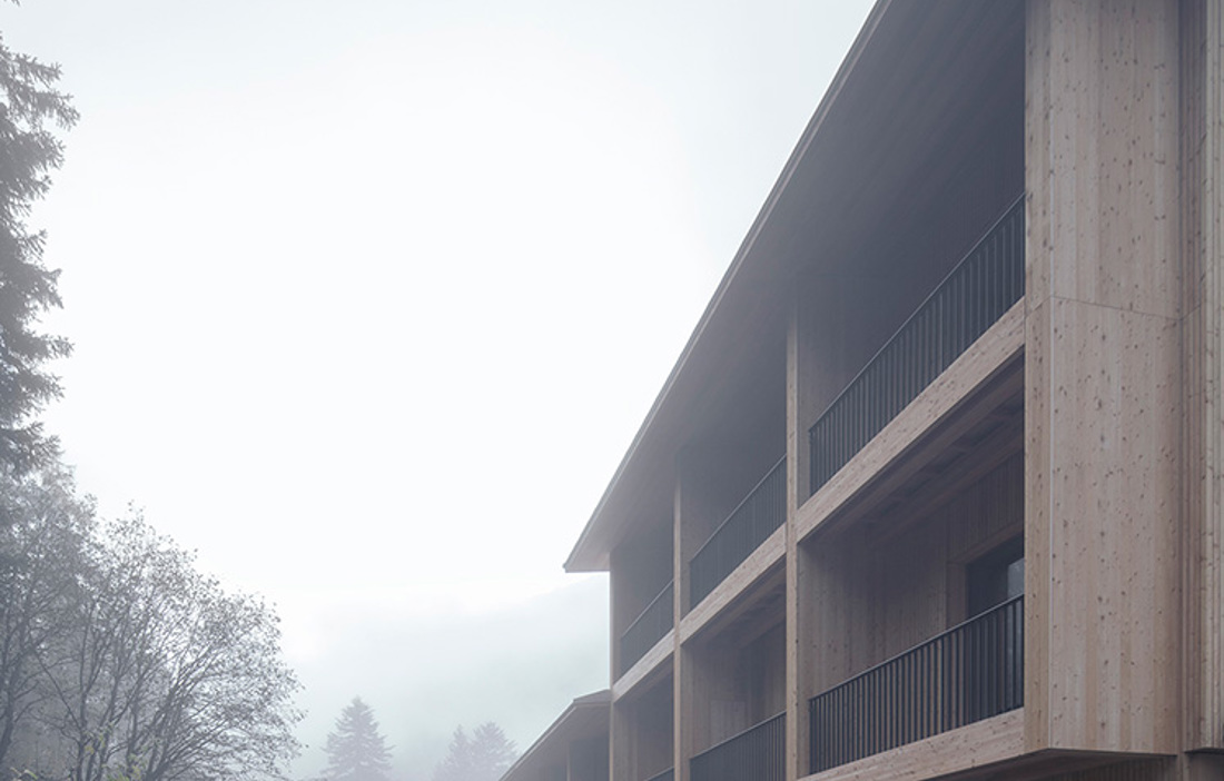 In the Swiss Alps, 1,400 metres above sea level, stands a cross-country skiing centre that attracts families and elite skiers with its well-prepared trails in a stunning environment. Since the centre was created in the 1970s, it has been sympathetically expanded. The latest addition is a building with social facilities and accommodation, carefully inserted between existing buildings so as not to pull focus from the surrounding landscape, which remains the star of the show.