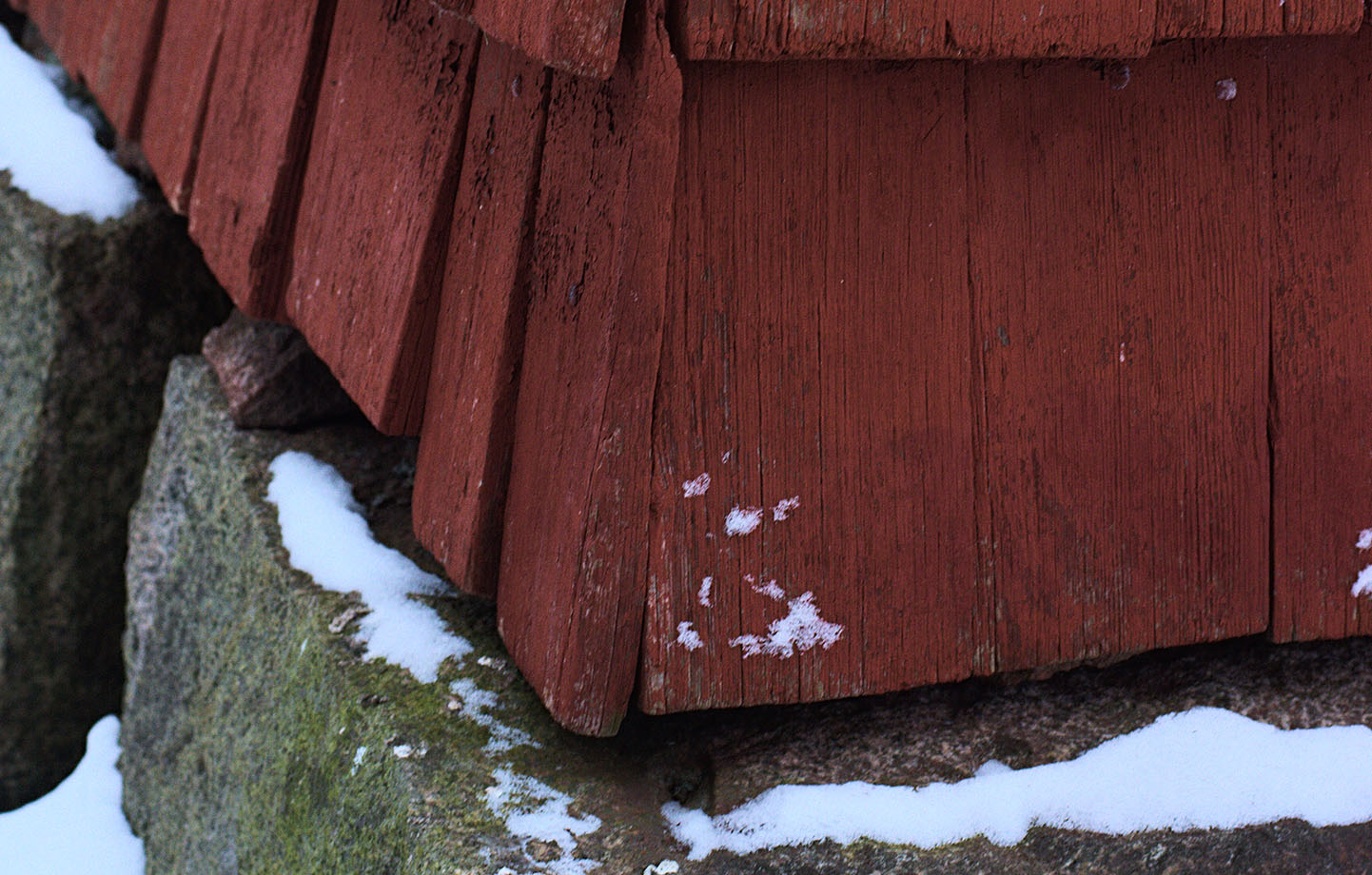 By the early thirteenth century, people in Sweden had clearly developed sufficient knowledge of construction engineering to build a good, sturdy building from three components: cross-joint log walls, a roof of birch bark covered with planks or shingles, and an insulated foundation. Cross-jointing requires a lot of timber – preferably straight, slow-growing pine without knots. The result is a very stable but heavy structure, each component of which can be individually replaced as necessary. This weight requires a stable stone foundation, or a solid stilt structure that also rests on stone.
